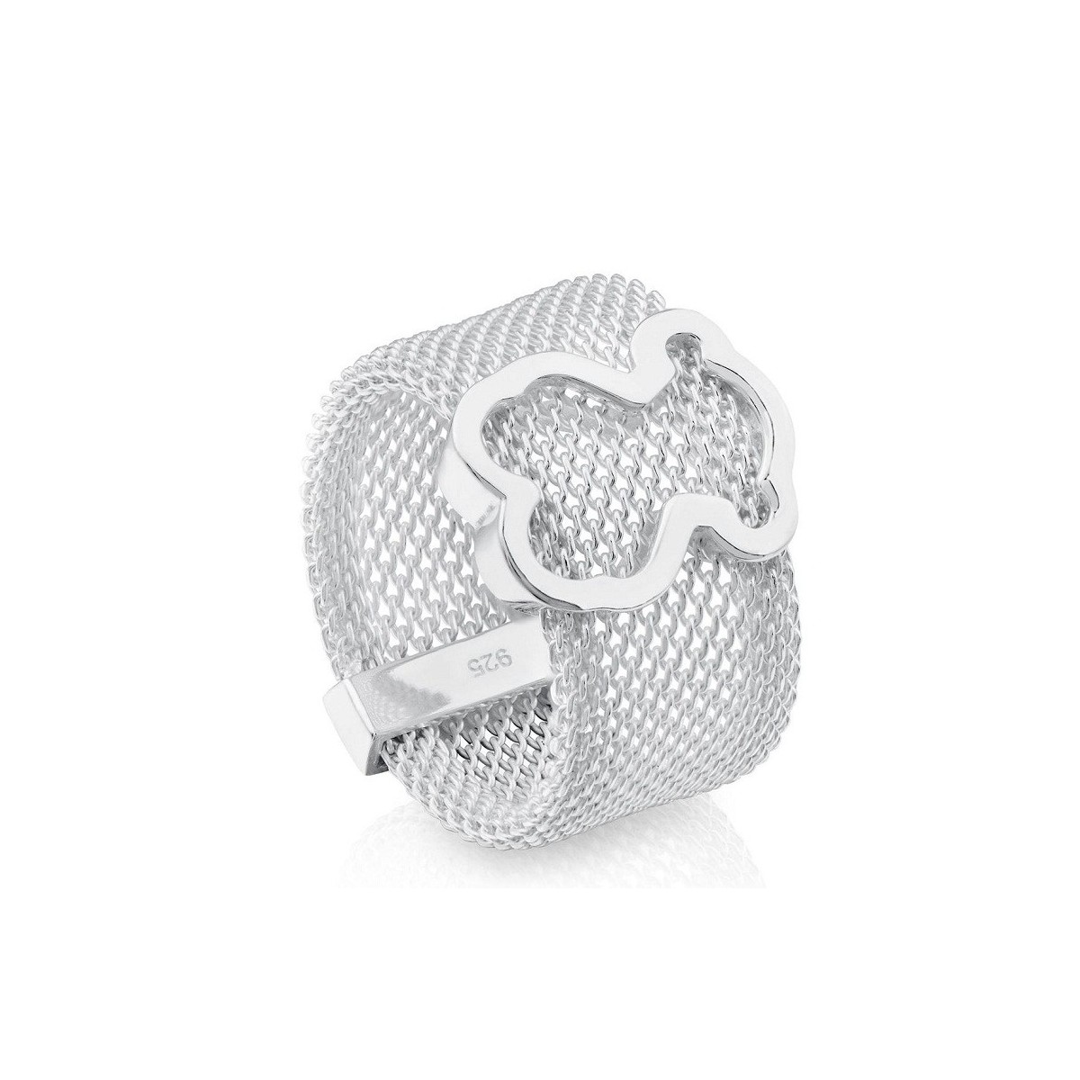 Anello maglia morbida a fascia larga in argento 925 con sagoma orsetto linea Icon Mesh