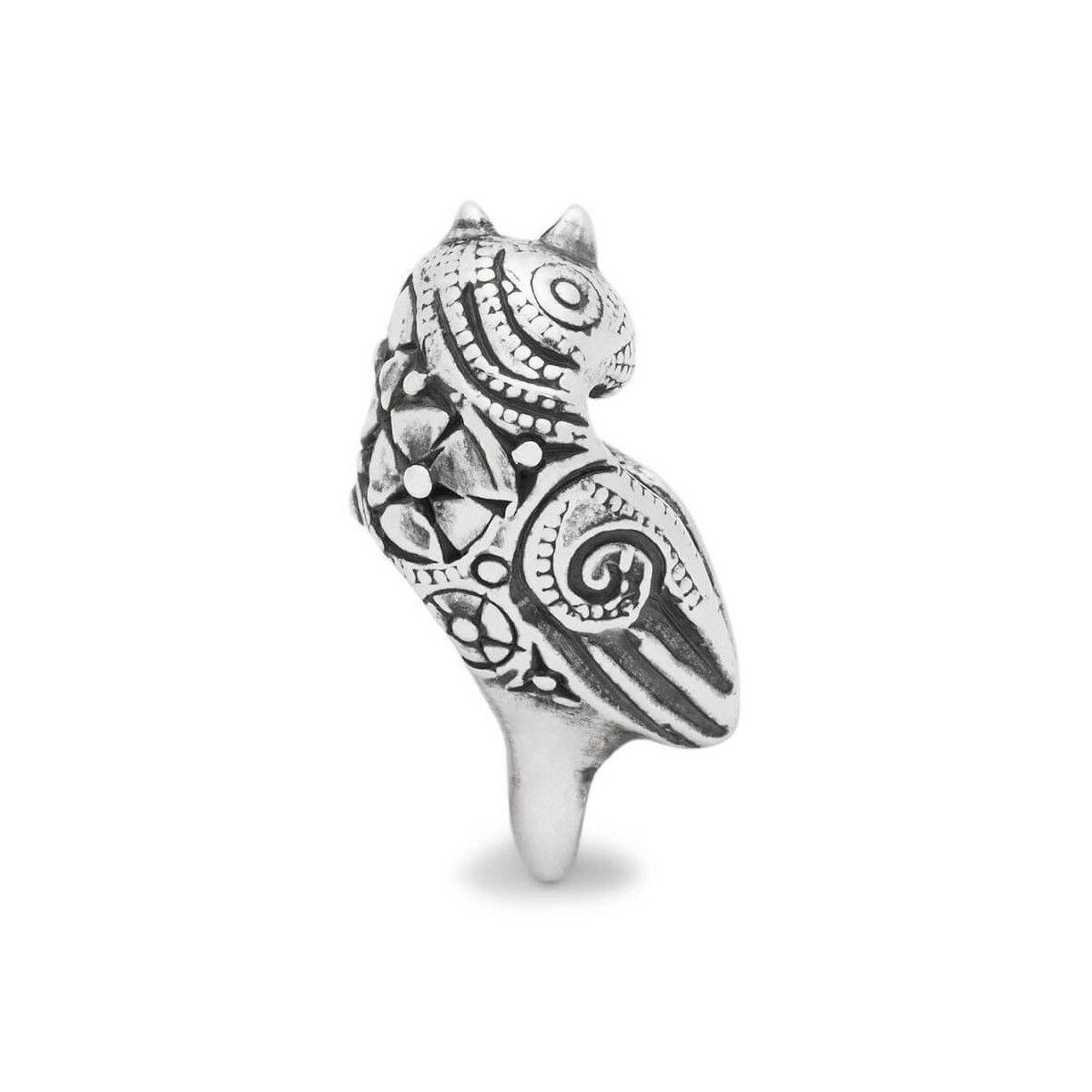 Bead fuori produzione in argento 925 raffigurante un uccellino con delle lavorazioni ornamentali.
