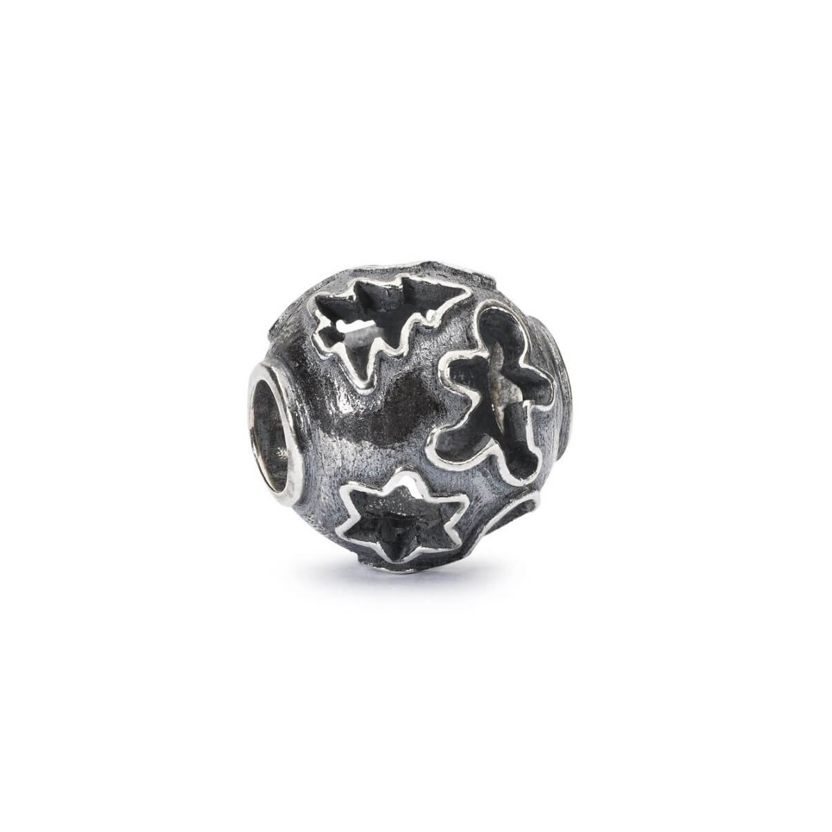 Bead fuori produzione in argento 925 a forma sferica con sagome di biscotti natalizi di varie forme.