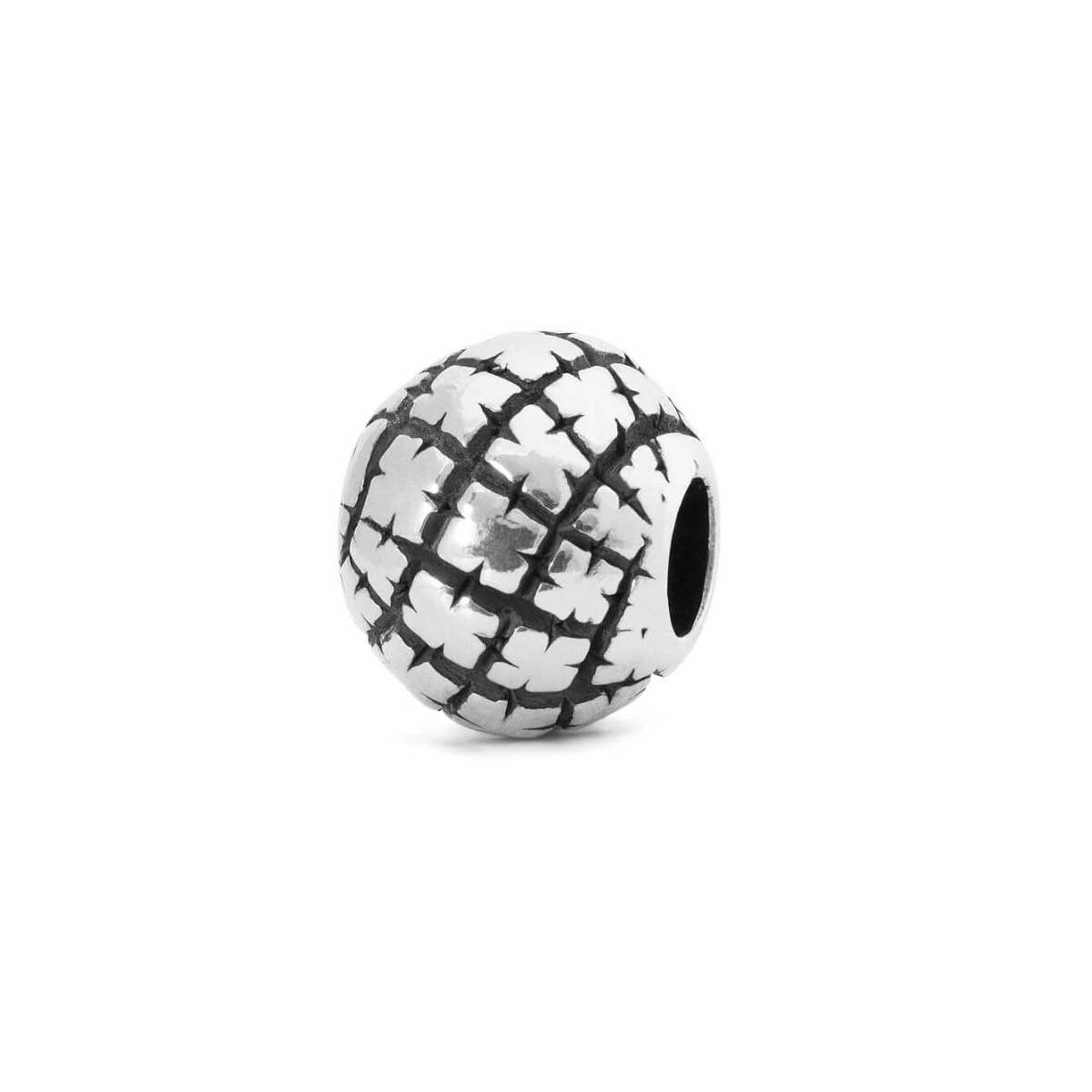 Bead fuori produzione in argento 925 a forma sferica con una lavorazione a rombi incisa.