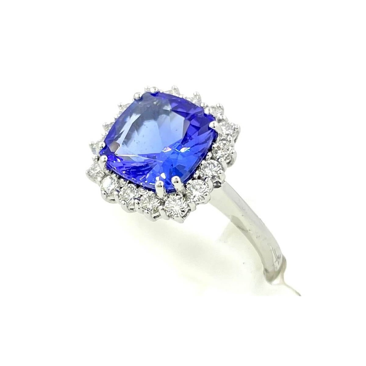 In questo anello di produzione artigianale il nostro orafo ha incastonato in una solida e robusta montatura in oro bianco 18 kt una stupenda Tanzanite Naturale proveniente dalla Tanzania e precisamente dalla colline a ridosso del monte Kilimangiaro dal taglio cushion a cuscino quadrato 9x9 mm circa dal colore blu viola intenso di quasi 3 carati e per impreziosire ulteriormente questo gioiello abbiamo contornato la gemma centrale con un giro di Diamanti Naturali taglio Brillante.