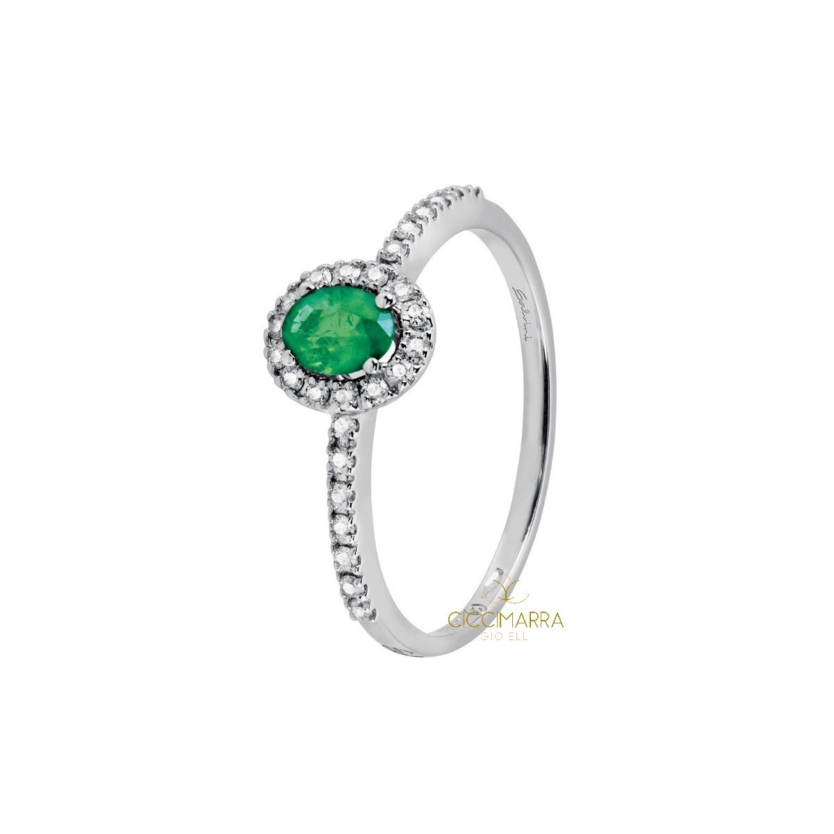 - Oro Bianco 18kt grammi 2,0 - Smeraldo Naturale taglio Ovale: carati 0,38 - Diamanti Naturali taglio Brillante: 0,18 - G - VS - VG/VG - Misura: 15 - Codice o Referenza:20084630 Certificato ed Assicurazione originale Salvini Gioielli contro Rapina e Scippo per Tre anni