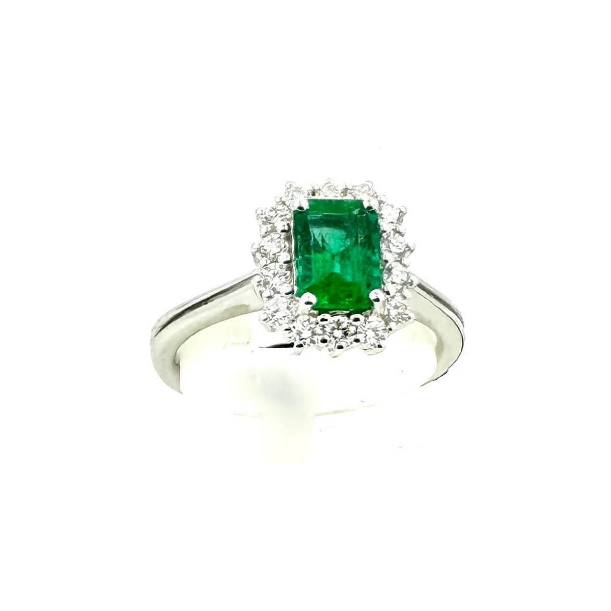 Anello con Smeraldo Naturale rettangolare da 0,80 carati e Brillanti Salvini