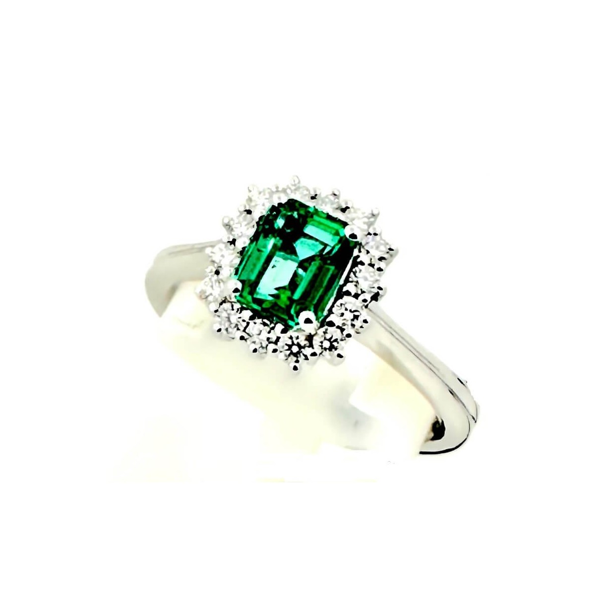 Anello con Smeraldo Naturale rettangolare da 0,86 carati e Brillanti Salvini