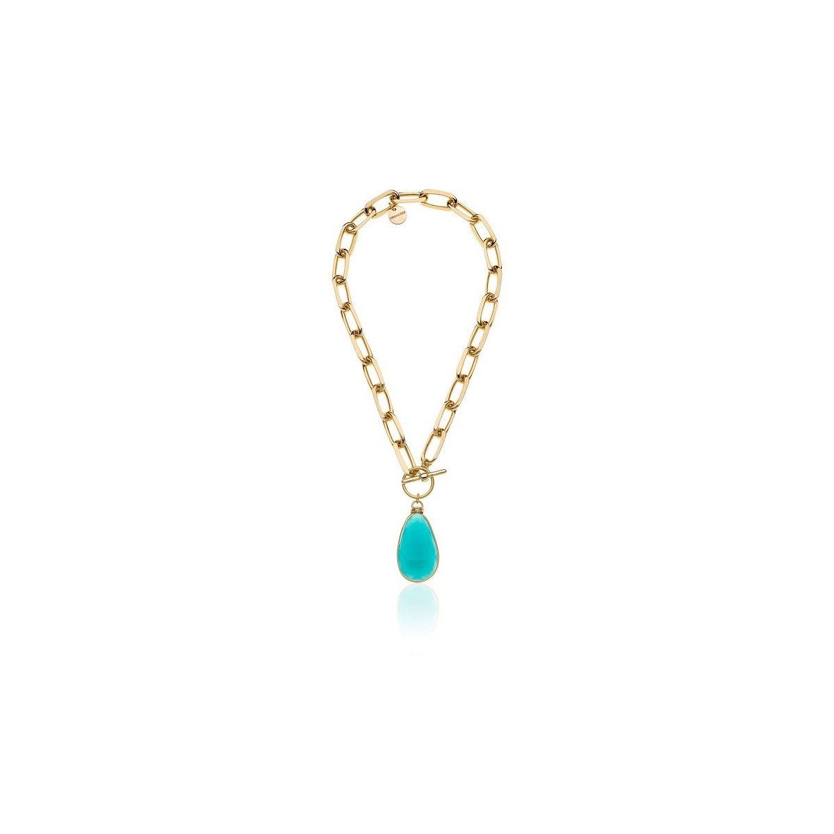 Collana a catena Unoaerre in bronzo dorato e cristallo turchese 006EXH0025000-2037