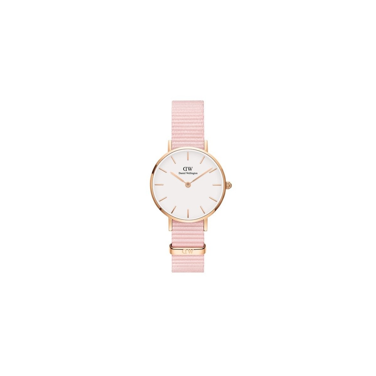Orologio donna della collezione Petite Rosewater con cassa in acciaio rosè e cinturnino NATO rosa, quadrante bianco e movimento al quarzo.