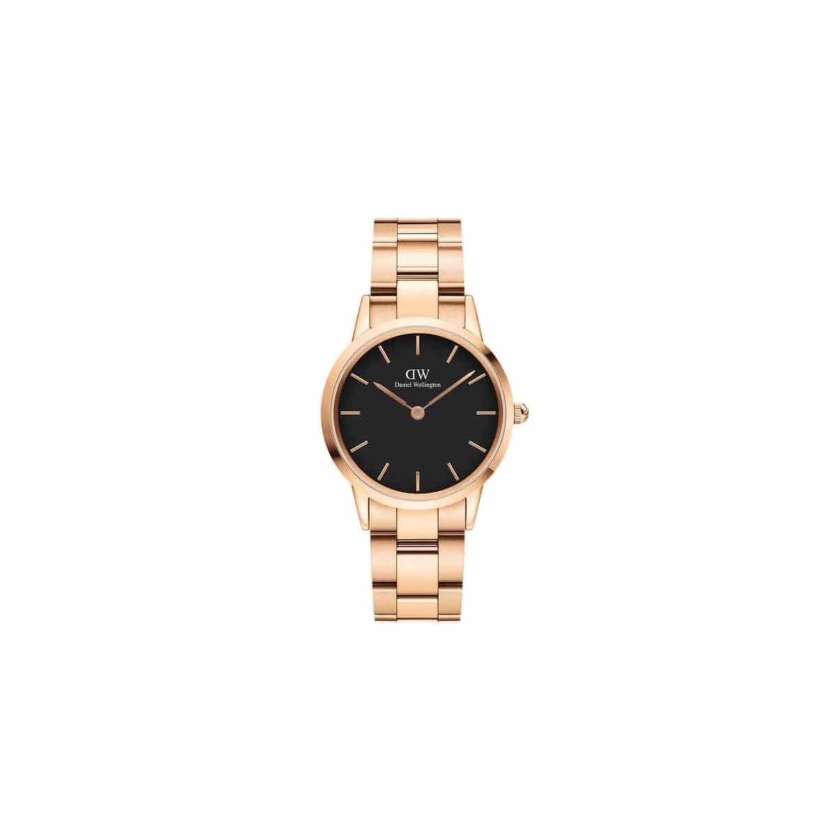 Orologio donna della collezione Iconic Link con cassa in acciaio rosè e cinturino a maglie con quadrante nero, movimento al quarzo. Iconic Link presenta un lussuoso bracciale metallico con maglie a tre componenti. Ogni segmento è costituito da elementi di acciaio massiccio realizzati uno ad uno, dalla linea elegantemente affusolata che unisce in maniera armoniosa la cassa al fermaglio.