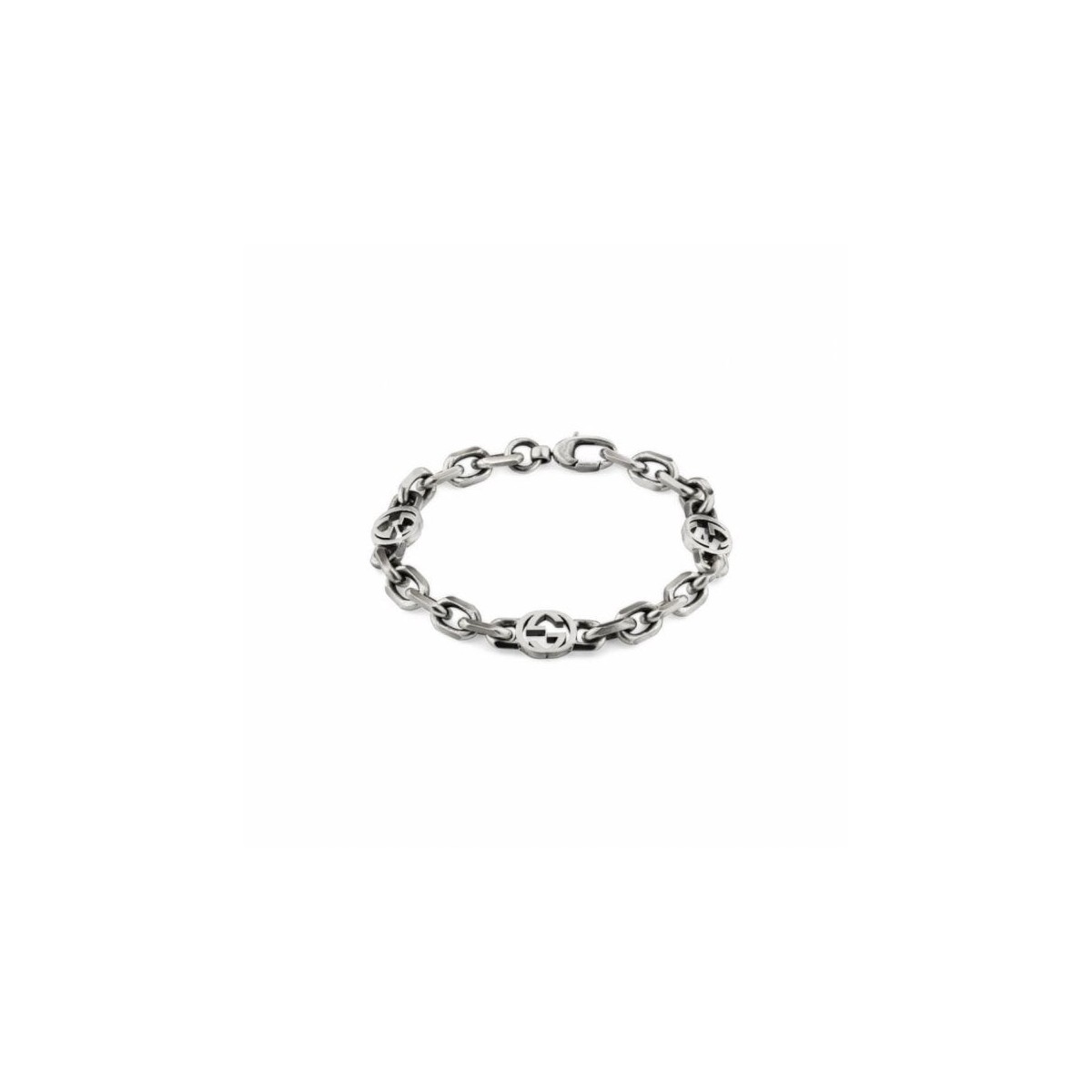 Realizzato in argento con finitura anticata, questo bracciale a catena è definito dall'Interlocking G. Simbolo proveniente dagli archivi della Maison, il dettaglio del monogramma rende omaggio al fondatore del marchio, Guccio Gucci, aggiungendo al contempo una sottile connotazione del logo.
