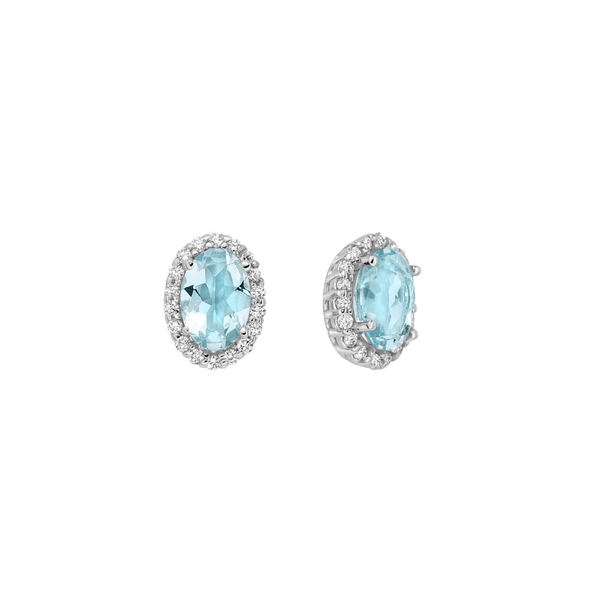 Orecchini da donna Miluna della collezione Le Gemme realizzati in oro bianco 18 carati con Acquamarina centrale naturale taglio ovale 0,74 carati impreziosita da una corona di 36 diamanti naturali taglio brillante 0,15 carati.
