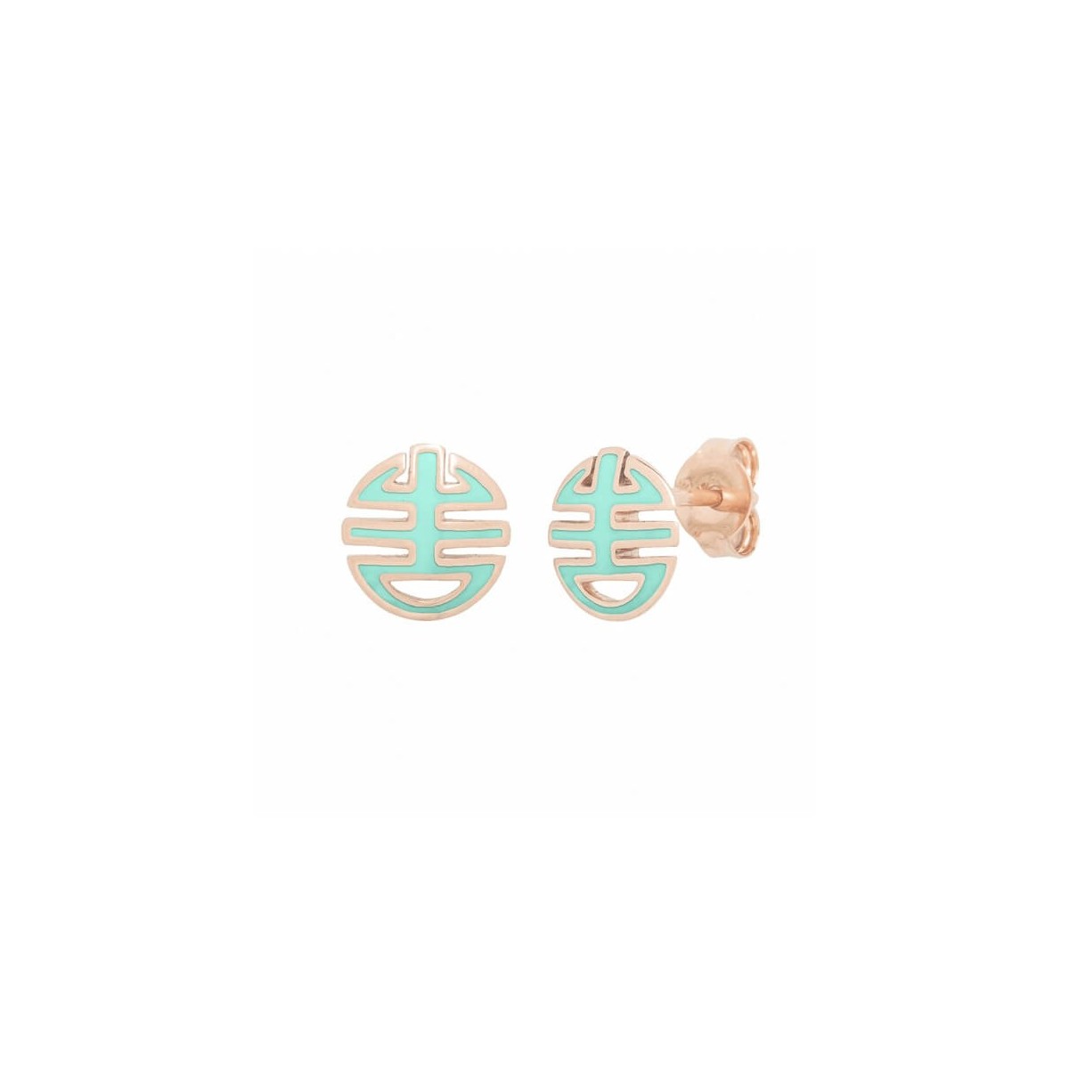 Orecchini lobo donna Ognibene Mimì in oro rosa e smalto verde acqua