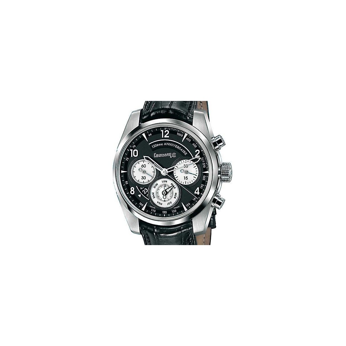 Eberhard 120° Anniversario – orologio da uomo con quadrante nero, cassa rotonda in acciaio e movimento cronografo automatico