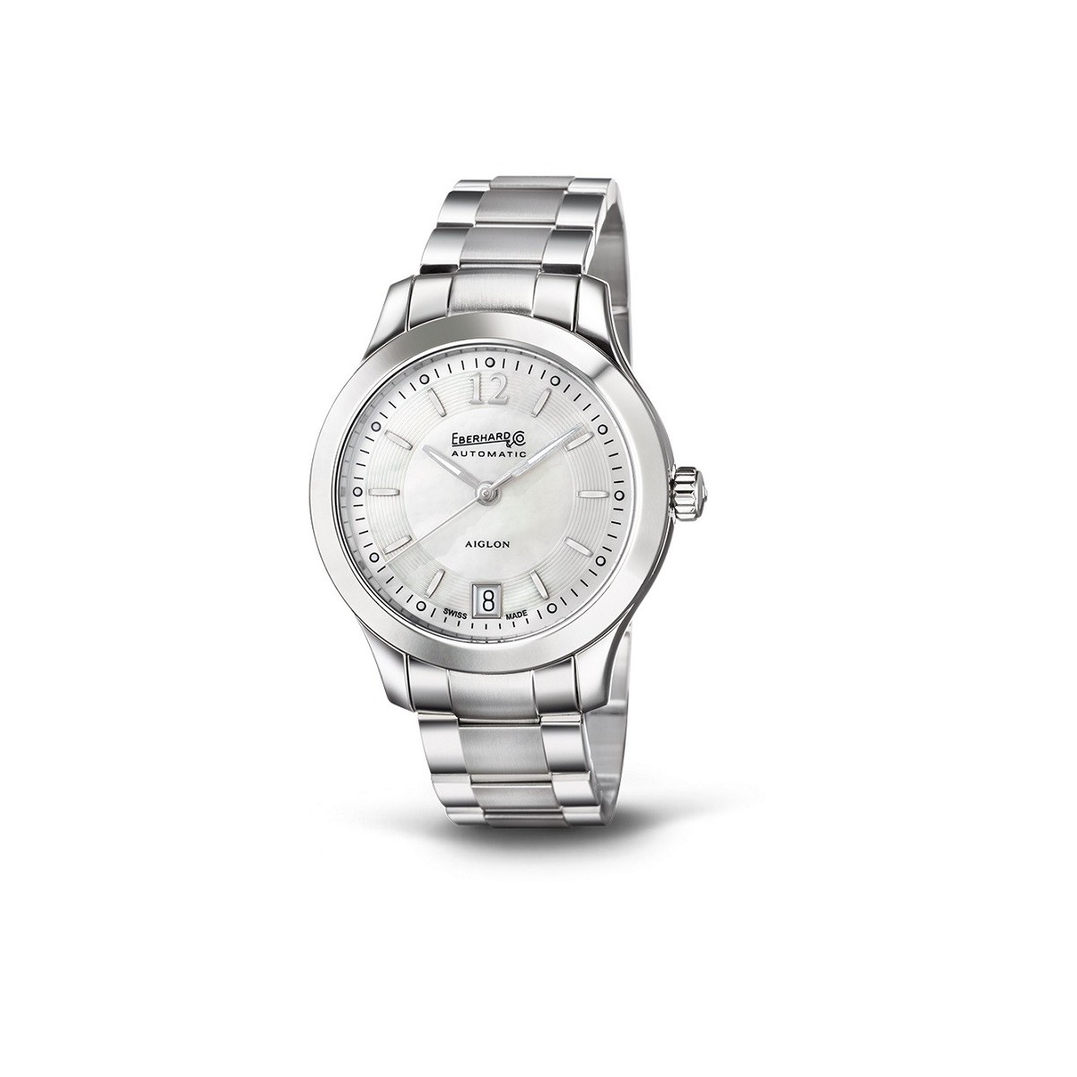 Orologio da donna Eberhard della collezione Aiglon Dame con funzione di solo tempo e movimento automatico. L'orologio è realizzato in acciaio con bracciale a maglie lavorato lucido e satinato con cassa 35 mm montante vetro zaffiro antigraffio ed antiriflesso, al suo interno troviamo poi il quadrante il un elegante color argento con indici e lancette in acciaio. Chiusura deployante.