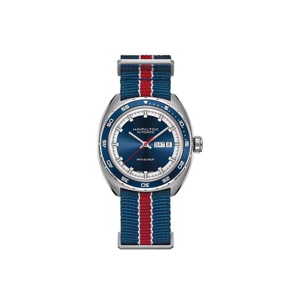 Questo orologio Pan Europ è equipaggiato con il nuovo movimento automatico Hamilton dalle elevate prestazioni, H30, con ben 80 ore di riserva di carica.