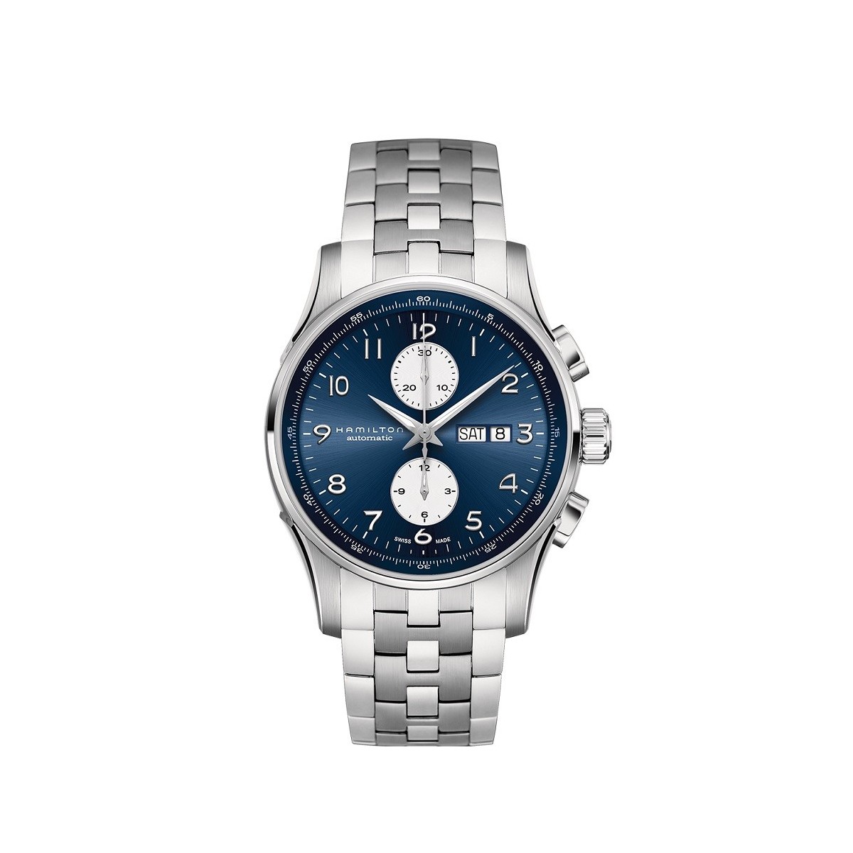 Orologio linea Jazzmaster Maestro Cronomgrafo Automatico Day Date da 41mm, con cassa e bracciale in acciaio e quadrante blu con sferini bianchi