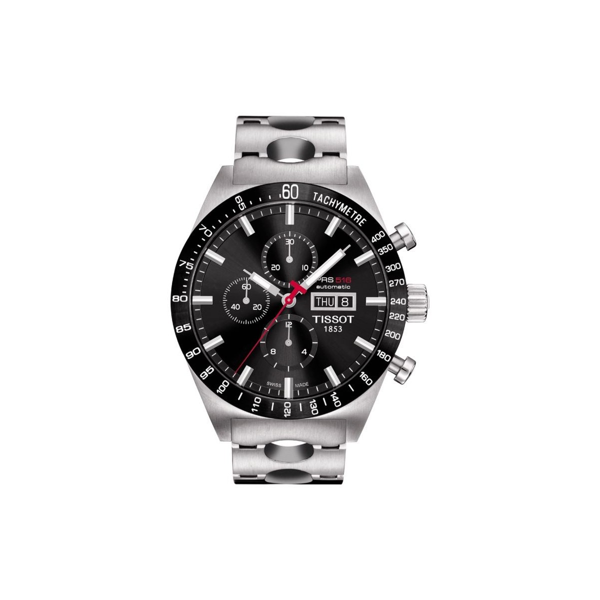 Orologio Prs516 Automatic Chronograph con cassa e bracciale in acciaio,vetro zaffiro e movimento automatico.La serie Tissot PRS 516 si prende il tempo di riflettere sulle sue origini ispirate agli sport motoristici degli anni Sessanta. Nei modelli Tissot PRS, ai nostalgici elementi di design che ricordano i circuiti, si coniugano le più recenti innovazioni dell'orologeria svizzera. Su alcuni di questi modelli, il movimento è visibile in azione attraverso il particolare fondello modellato a guisa di volante di un'auto sportiva dei tempi storici