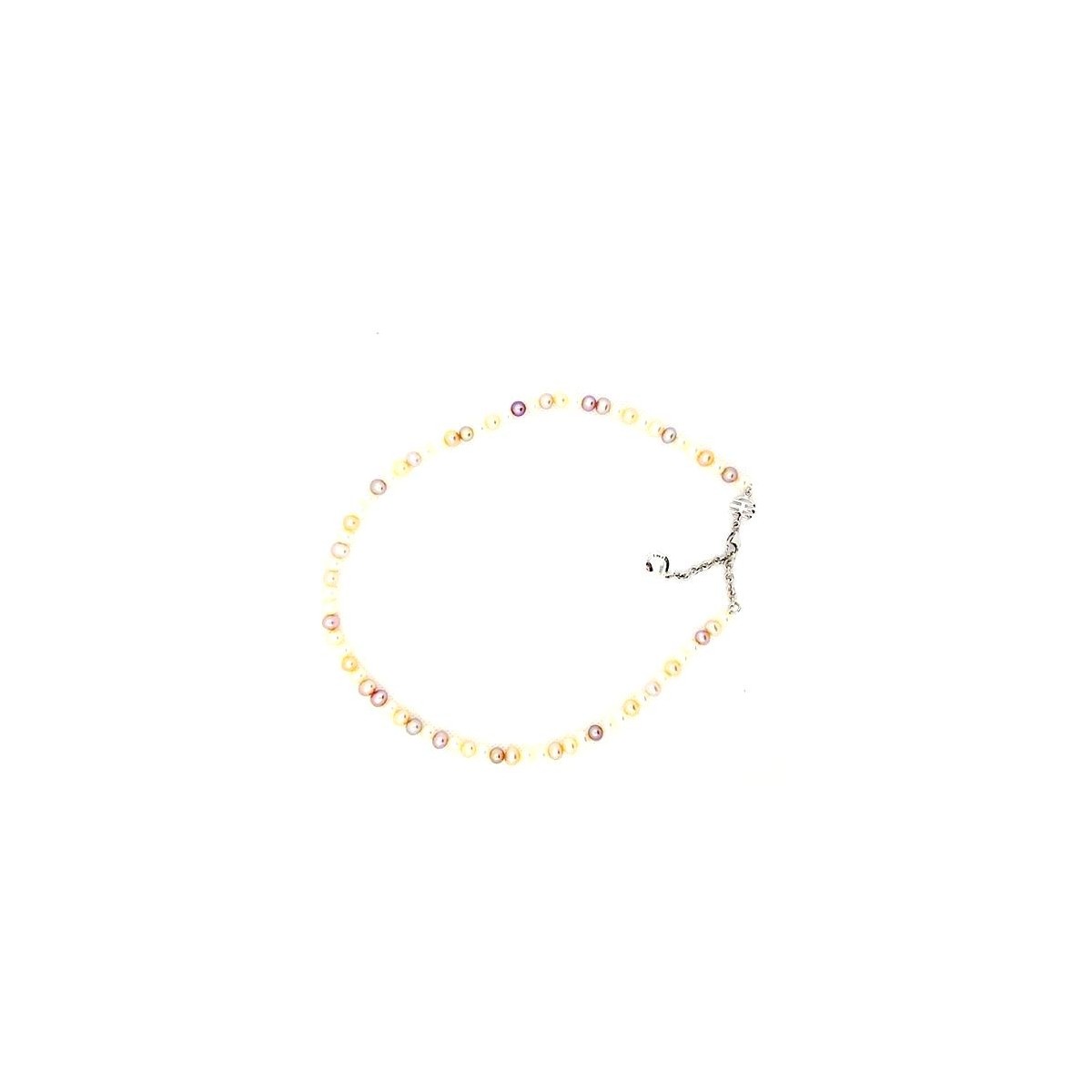 Collana in perle multicolor, lilla, bianche e crema, Mimì elastica di diametro 5,5/6 mm con chiusura regolabile in tre lunghezze tramite ad una catena con intervallato il logo Mimì Ognibene in argento 925