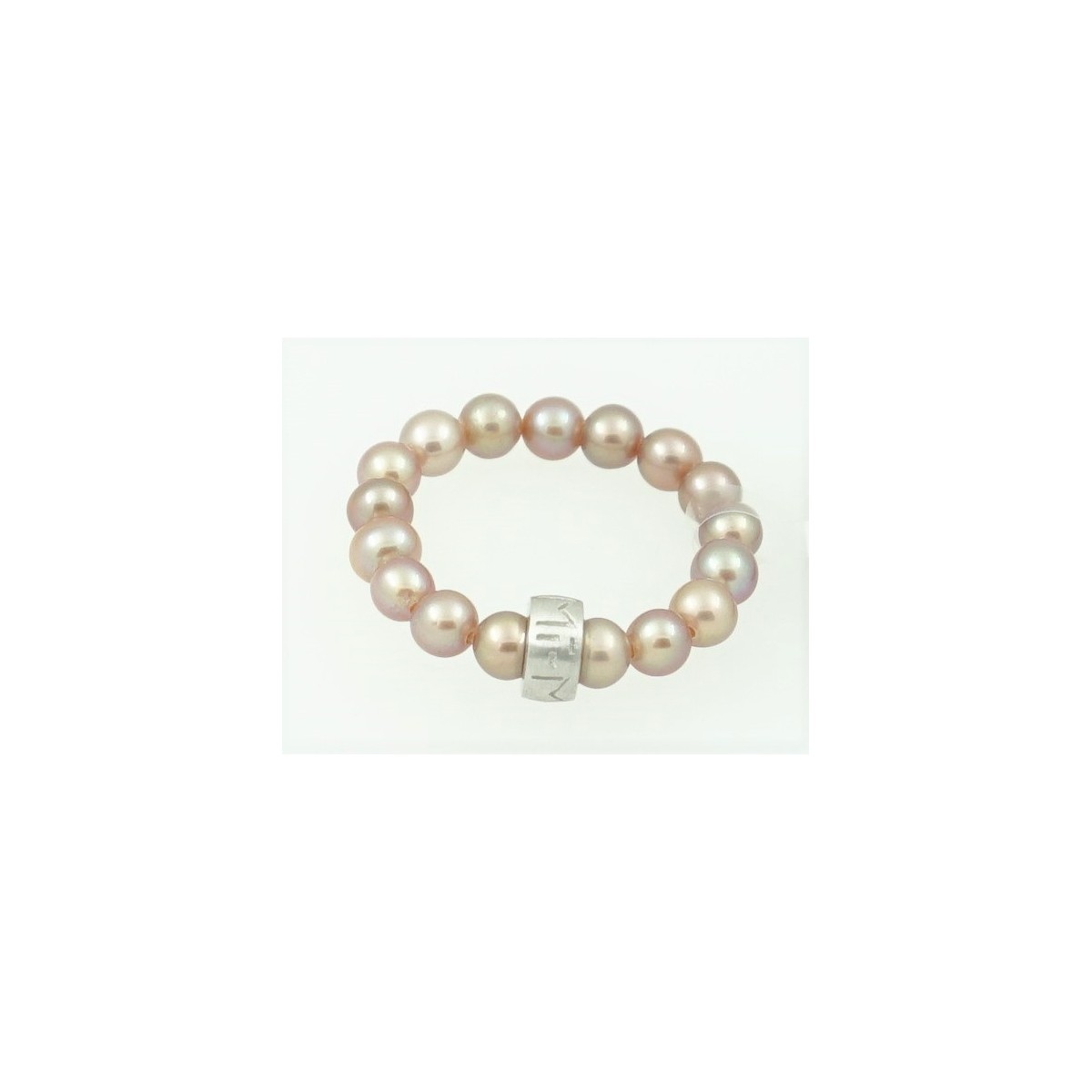Anello linea elastica in perle sfera piccola viola lilla e argento con rondella logo Mimì in argento 925 - taglia 12,14,16