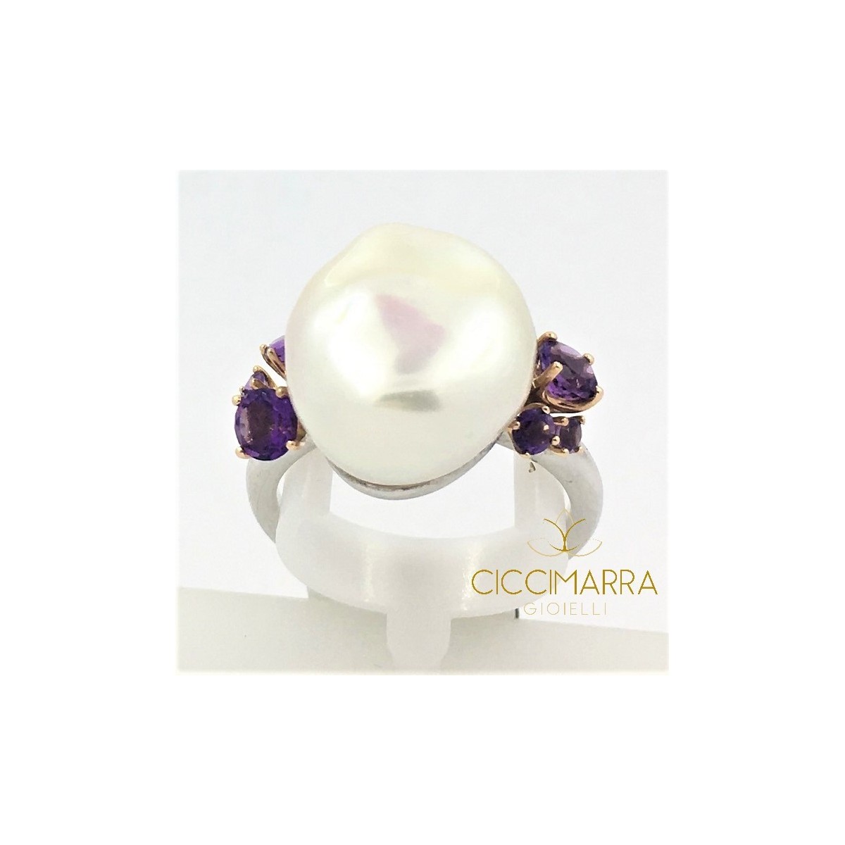 ANELLO MIMI' CON PERLA BAROCCA ED AMETISTE