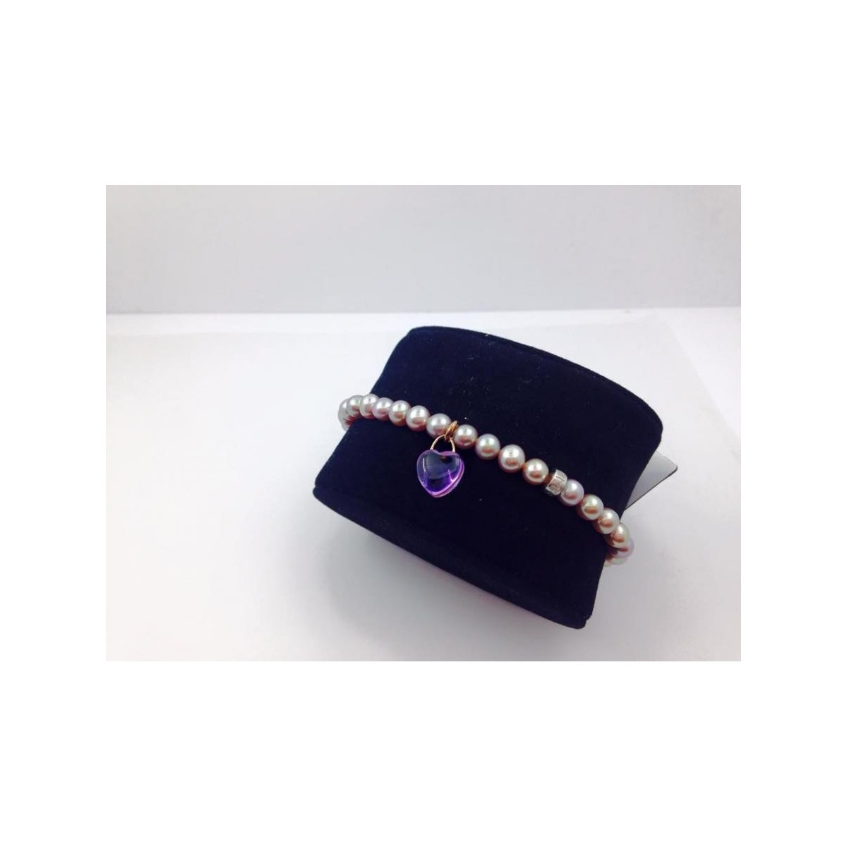 Bracciale elastica con perle viola cuore ametista - B023T3A