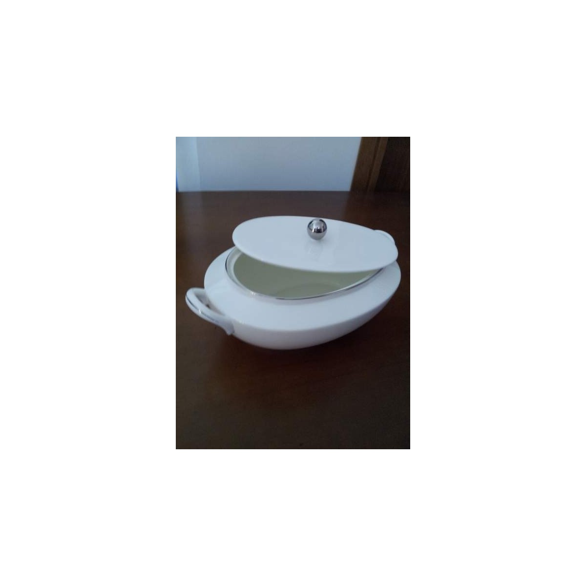 Componente zuppiera servizio piatti linea lago con filo in platino in fine porcellana Bone China