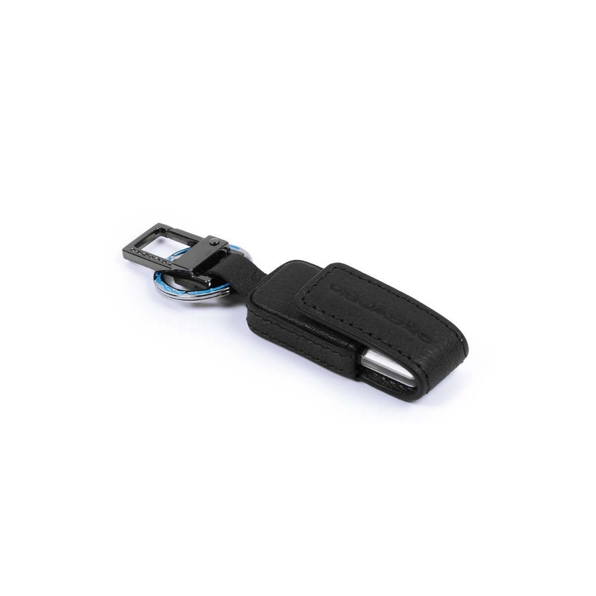 - Portachiavi in pelle con chiavetta USB da 16 GB della linea Black Square colore blu. I prodotti della linea Black Square (B3) sono realizzati con un pellame toscano pieno fiore, conciato con tannini vegetali. Il suo aspetto non omogeneo è il risultato di una paziente lavorazione artigianale di lavatura e asciugatura che consente alla pelle di acquisire quelle differenze di tonalità di colore, grana e morbidezza, che rendono ogni pezzo della collezione unico ed esclusivo.