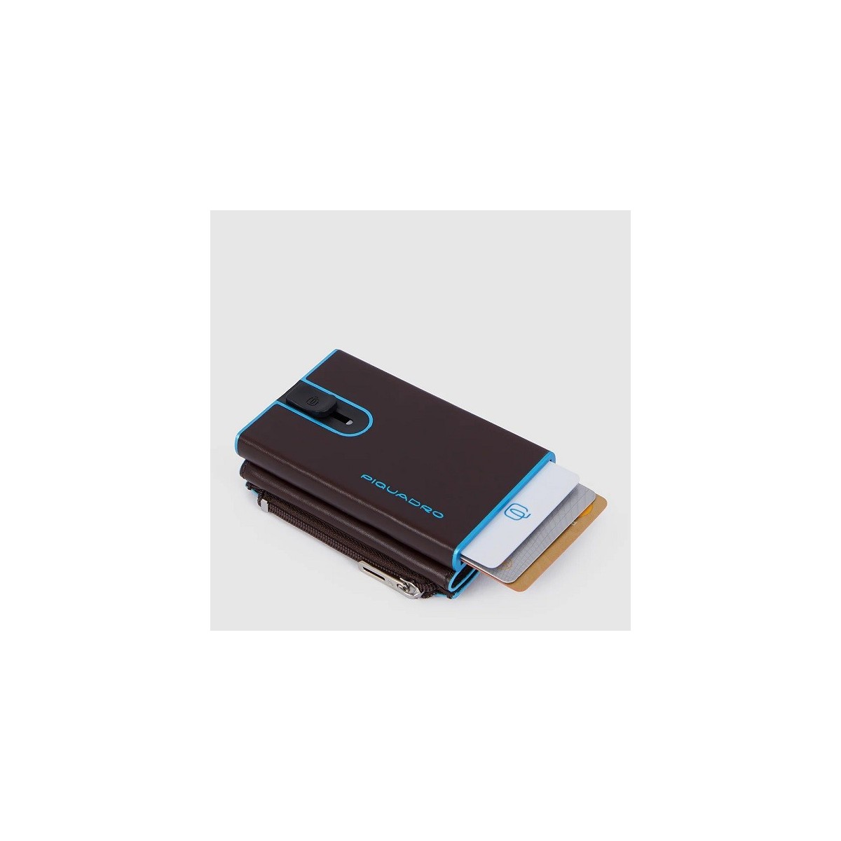 Porta Carte Compact Wallet Piquadro Blue Square in pelle mogano