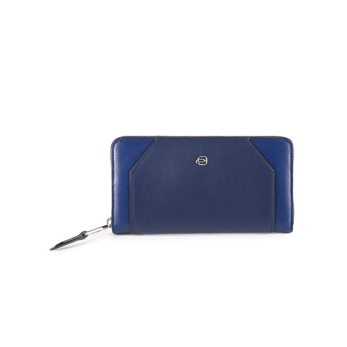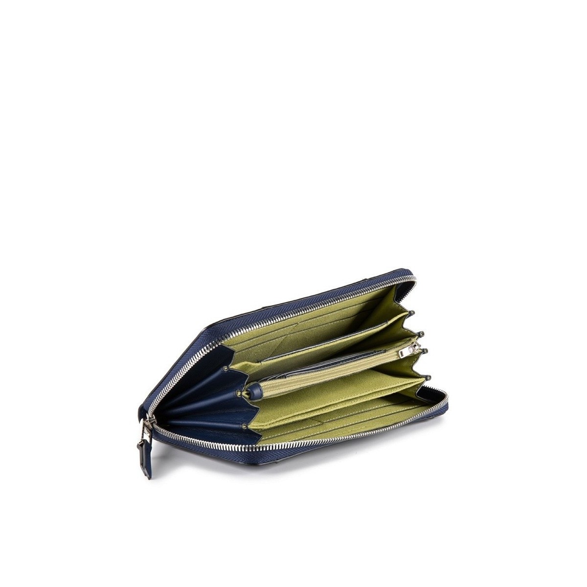 Portafoglio donna della linea Muse in pelle colore blu con 4 soffietti chiuso da zip con portamonete, porta carte di credito, anti-frode RFID . La collezione Muse è composta da accessori e borse femminili realizzati in 3 differenti tipi di pellame: vitello pieno fiore, dalla grana naturalmente irregolare ; vitello con finitura semilucida, molto morbido e dal contrasto di colore tono su tono; vitello con finitura semilucida abbinata a pelle di vitello scamosciata. Tutte le varianti sono impreziosite da accessori metallici con finitura lucida.