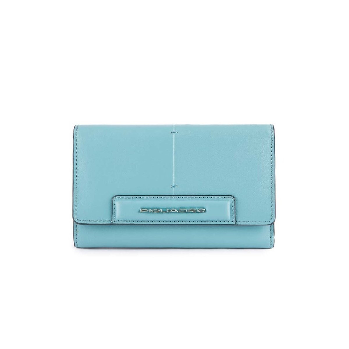- Portafoglio donna grande con porta carte di credito della linea Splash in pelle colore azzurro. La linea Splash è caratterizzata dai contrasti di colore che si creano grazie all'abbinamento di un pellame pieno fiore liscio e morbido con della colorata e morbida nappa. Ogni prodotto è impreziosito da dettagli in metallo o il tingibordo nero.