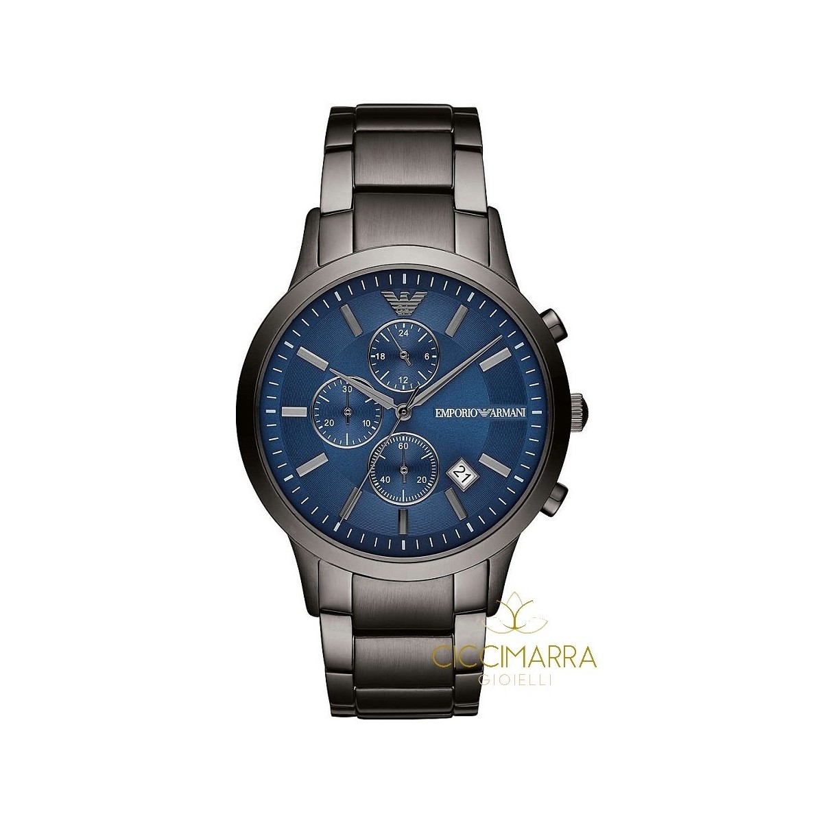 Orologio Gent della collezione Cronografi con cassa e cinturino in acciaio canna di fucile con finitura mista e quadrante blu con indici e lancette silver, datario a sfere, chiusura Deployante a farfalla. Garanzia Internazionale Emporio Armani;Codice AR11215;Chiusura : Deployante;Colore del Cinturino: Canna di Fucile;Dimensione della Cassa: 43mm;Forma Orologio: Rotonda;Larghezza Ansa: 22mm;Materiale Cassa: Acciaio;Materiale Cinturino: Acciaio;Movimento: Quarzo:Resistenza all'acqua: 50m - 5ATM - 5bar.
