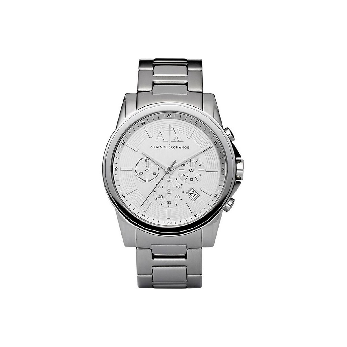 Orologio uomo Exchange Outerbanks Nuova linea dello stilista Giorgio Armani che unisce in ogni modello tutte le caratteristiche migliori delle linee più accattivanti delle ultime collezioni di maggiore tendenza. Per un uomo sportivo ma nello stesso tempo raffinato, un cronografo con cassa e cinturino in acciaio, quadrante argento e lancette ed indici silver.