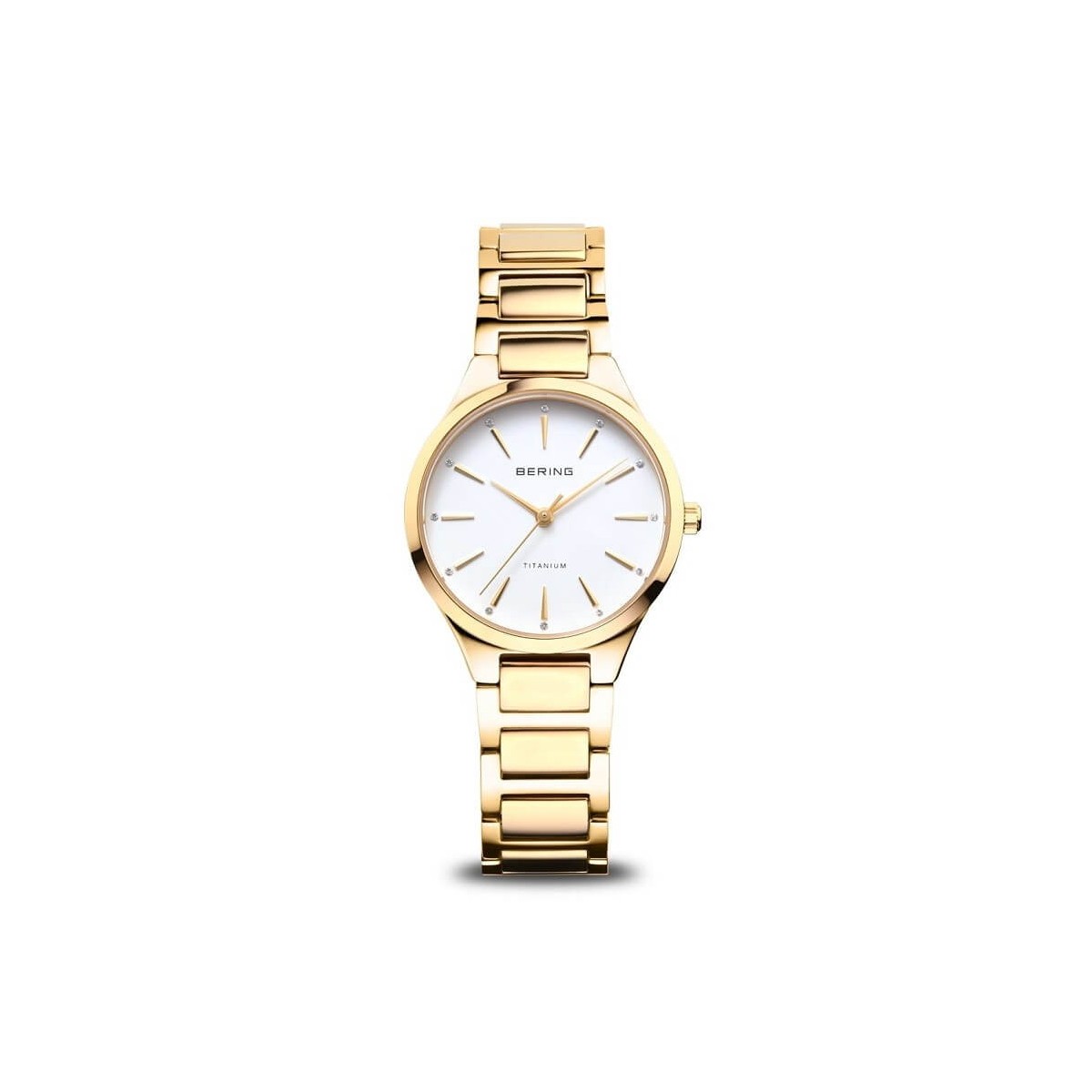 Orologio Bering appartenente alla collezione Titanium. Ultra leggero e ultra elegante. Realizzato in titanio color oro giallo, cassa piatta vetro zaffiro antigraffio di colore oro giallo.
