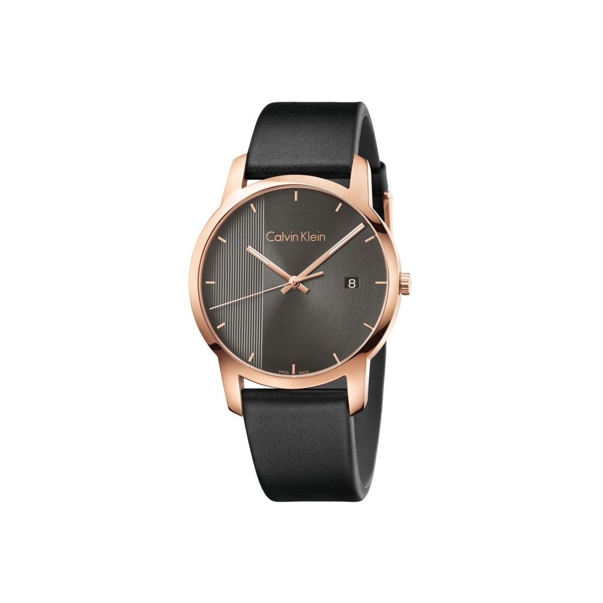 Calvin Klein City - Cinturino in pelle Extension Lucente. Di una classe senza tempo. Calvin Klein city. Una costruzione lineare che crea un segnatempo dal look semplice ma d’effetto. Prende ispirazione dalle metropoli e dall’uomo contemporaneo questo orologio in vetro minerale e metalli lucidati che creano un effetto estremamente luminoso. TIPOLOGIA Uomo - - FINITURA Lucido - MATERIALE CASSA PVD oro rosa - COLORE QUADRANTE Antracite - MATERIALE CINTURINO Pelle - COLORE CINTURINO Nero - - - TIPO DI MOVIMENTO Quarzo - MOVIMENTO ETA F07.411 - FUNZIONI Tempo, data - Swiss Made - IMPERMEABILITA' 3bar (fino a 30 metri) - DIAMETRO CASSA 43.00 mm - Superluminova - VETRO Minerale - TIPOLOGIA DI CHIUSURA Fibbia ad ardiglione