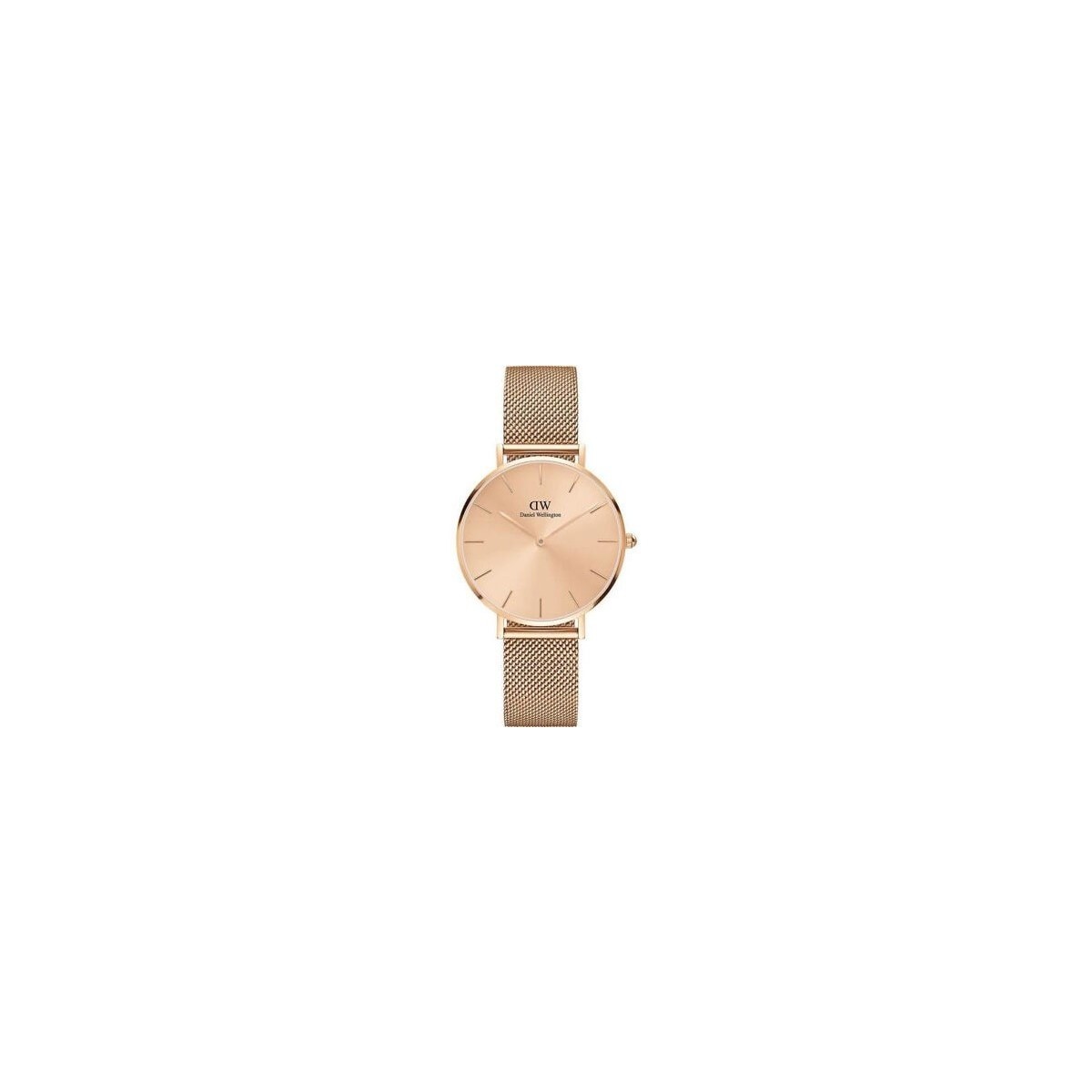Orologio da donna Daniel Wellington della collezione Petite Unitone, funzione solo tempo, con delicata placcatura oro rosato che ben si unisce alla cassa della misura di 32mm della stessa nuance. Cinturino realizzato in maglia milano. Un orologio che dà un il giusto tono ad ogni occasione.