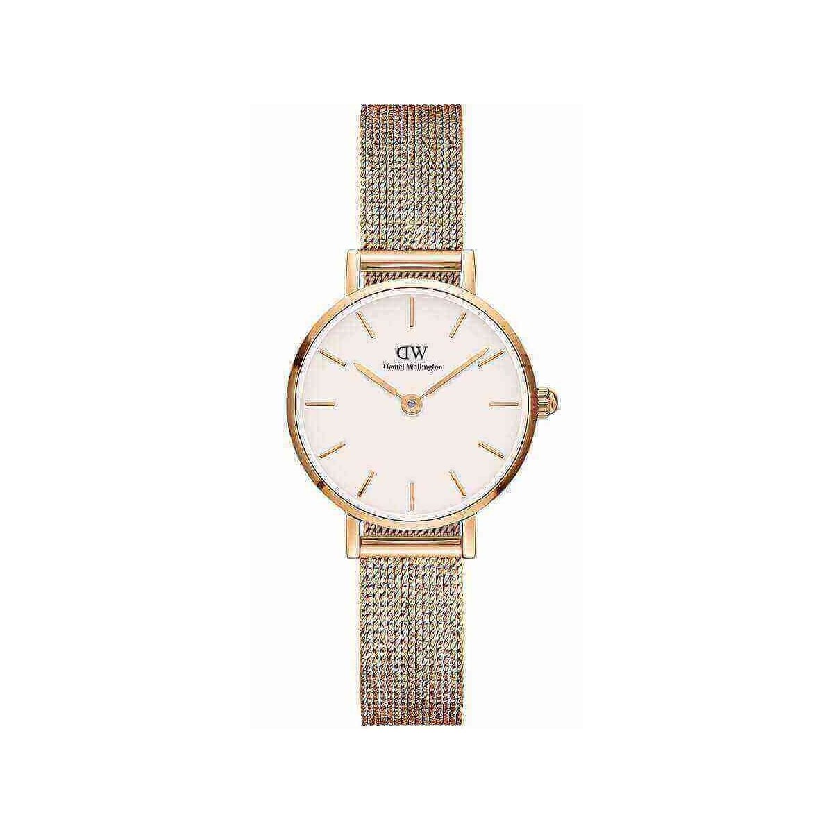 Orologio da donna Daniel Wellington della linea Petite Melrose con cassa di 24 mm e quadrante bianco guscio d'uovo è l'ideale per una donna dallo stile classico ed elegante. Il bracciale realizzato in maglia milanese con delicata placcatura in oro rosato lo rende raffinato e adatto per ogni look. Orologio con funzione di solo tempo e con movimento al quarzo