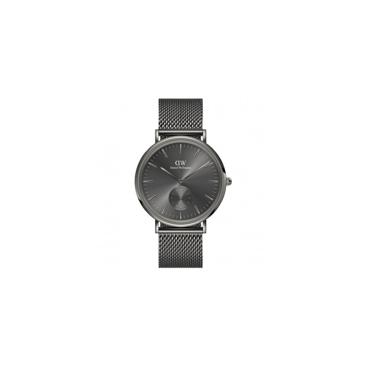Orologio donna Daniel Wellington, della collezione Classic Multi- Eye , con funzione di solo tempo e movimento al quarzo. L'orologio è realizzato con cassa in acciaio inox con finitura gun metal dal diametro di 40 mm. Quadrante grigio con indici a bastoni, logo nella parte alta e contatore con piccolo secondo nella parte bassa, cinturino in maglia milano d'acciaio anallergenico color canna di fucile; chiusura a scatto.