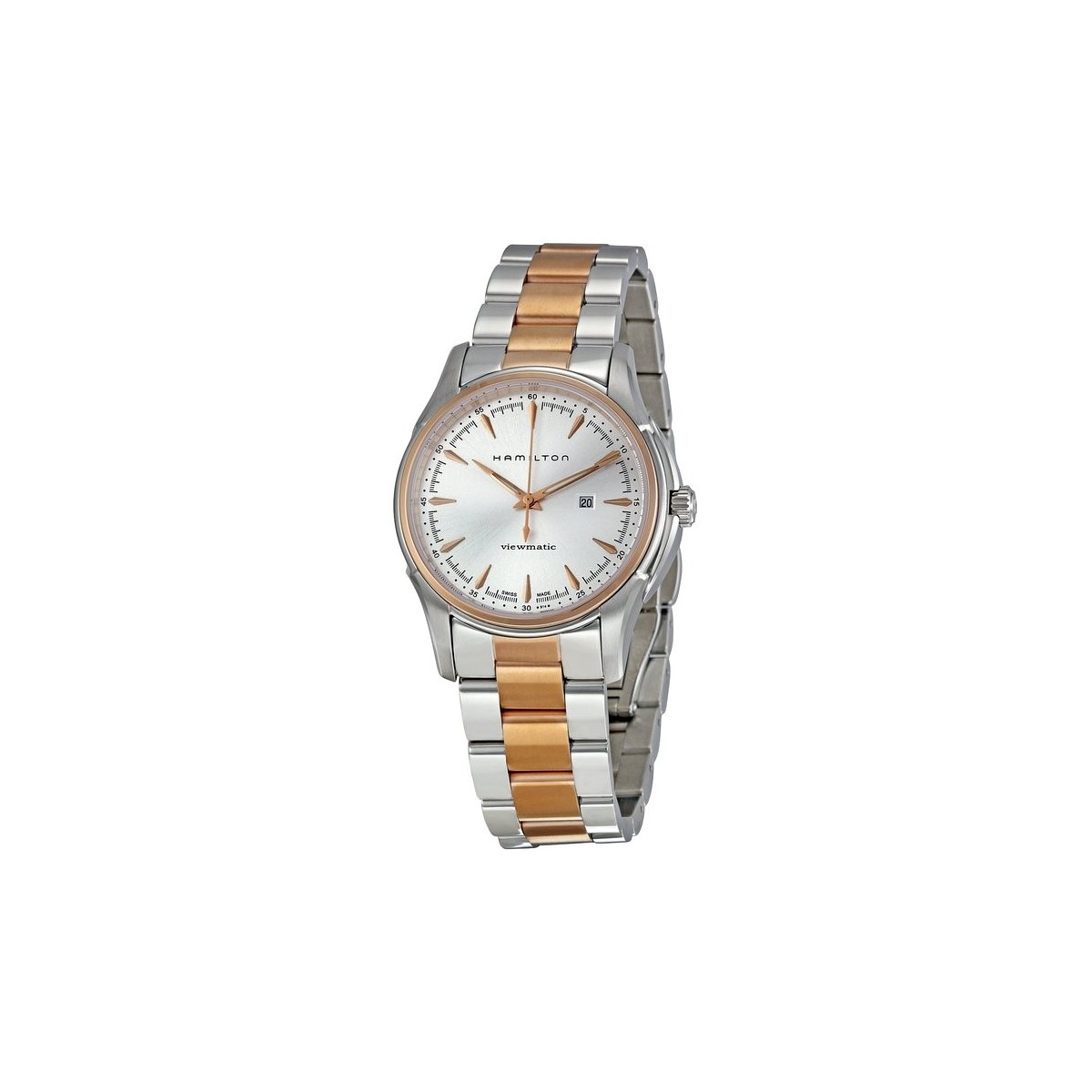 Orologio da donna Jazzmaster Viewmatic Automatico con cassa e bracciale in acciaio pvd rosè, indici dorati e movimento automatico. Datario su quadrante silver satinato