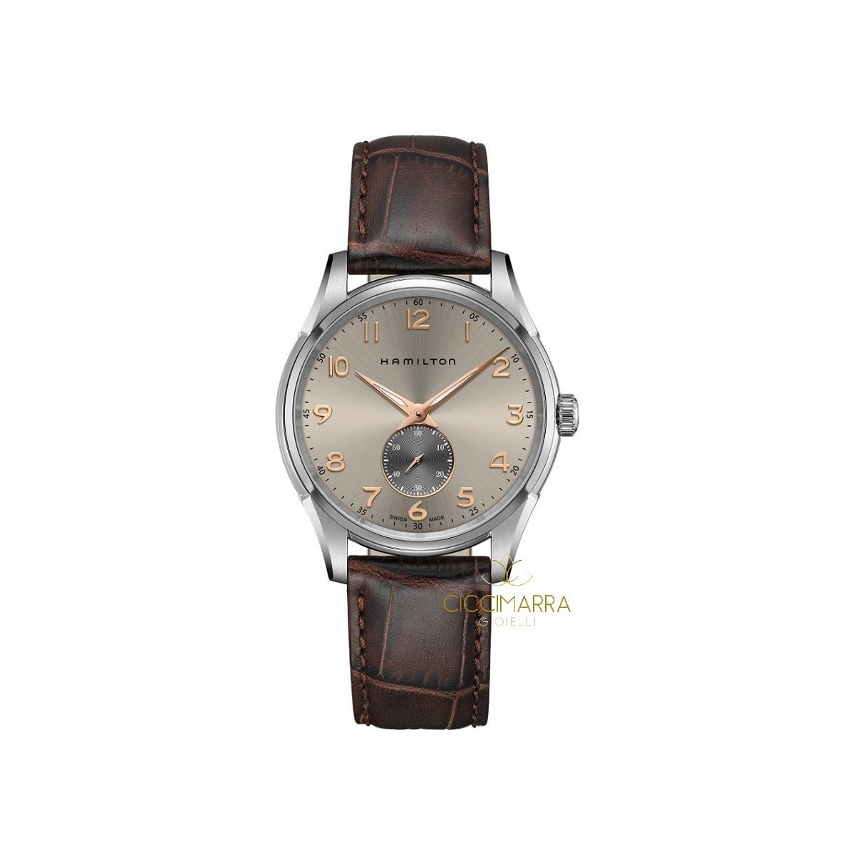 Discreto ed elegante questo orologio Hamilton è davvero comodo e pratico per un uso giornaliero o per qualche ricorrenza che necessita di un outfit elegante o casul chic. La sua dimensioni, giusta per i polsi medio piccoli, il colore grigio fumè del quadrante con i numeri arabi e le lancette di colore rosè a contrasto e lo sferino dei secondi posizionato ad ore 6 rendono questo Hamilton unico, riconoscibile, elegante e giusto per ogni occasione. Molto apprezzato è lo spessore ridotto della cassa per una comodità e praticità senza eguali. Da non tralasciare neanche il cinturino in pelle marrone con lavorazione a stampa coccodrillo e con chiusura ad ardiglione