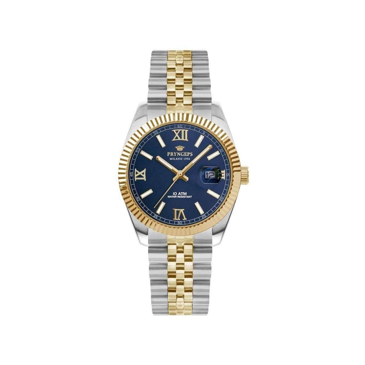 Orologio Pryngeps A821/2B tipo Datejast bicolore acciaio e dorato con quadrante blu