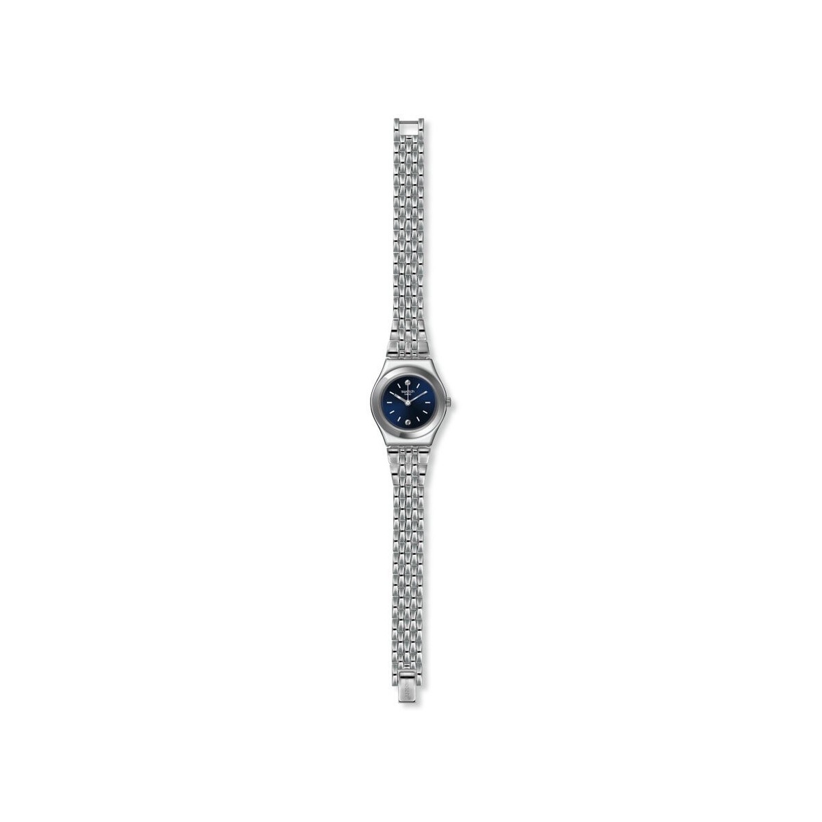 Orologio Swatch sloane della collezione I Lady con movimento solo tempo al quarzo, cassa in acciaio di colore argento e di forma rotonda da 25 mm e cinturino in acciaio di colore argento