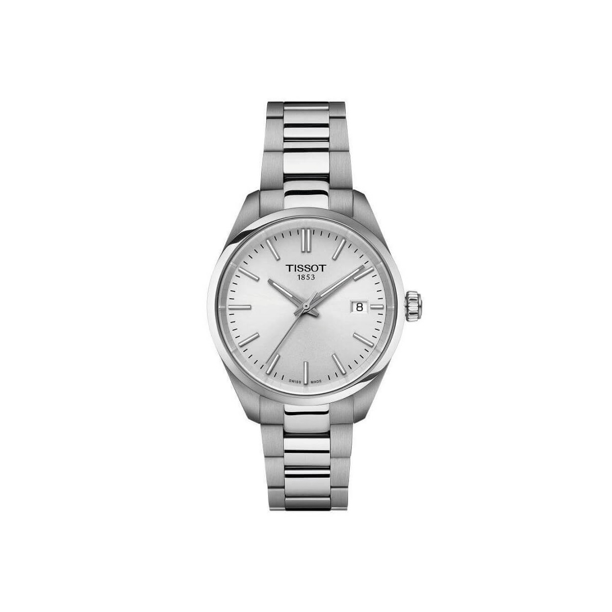 Orologio donna Tissot PR 100, della collezione T-Classic, con funzione di solo tempo e movimento al quarzo svizzero. L'orologio è realizzato in acciaio 316L con bracciale a maglie lavorato lucido e satinato, cassa in acciaio 34 mm montante vetro zaffiro con lavorazione antigraffio ed antiriflesso e quadrante silver con indici e lancette dotate di SuperLumiNova per una migliore leggibilità anche notturna. Datario posto ad ore 3.