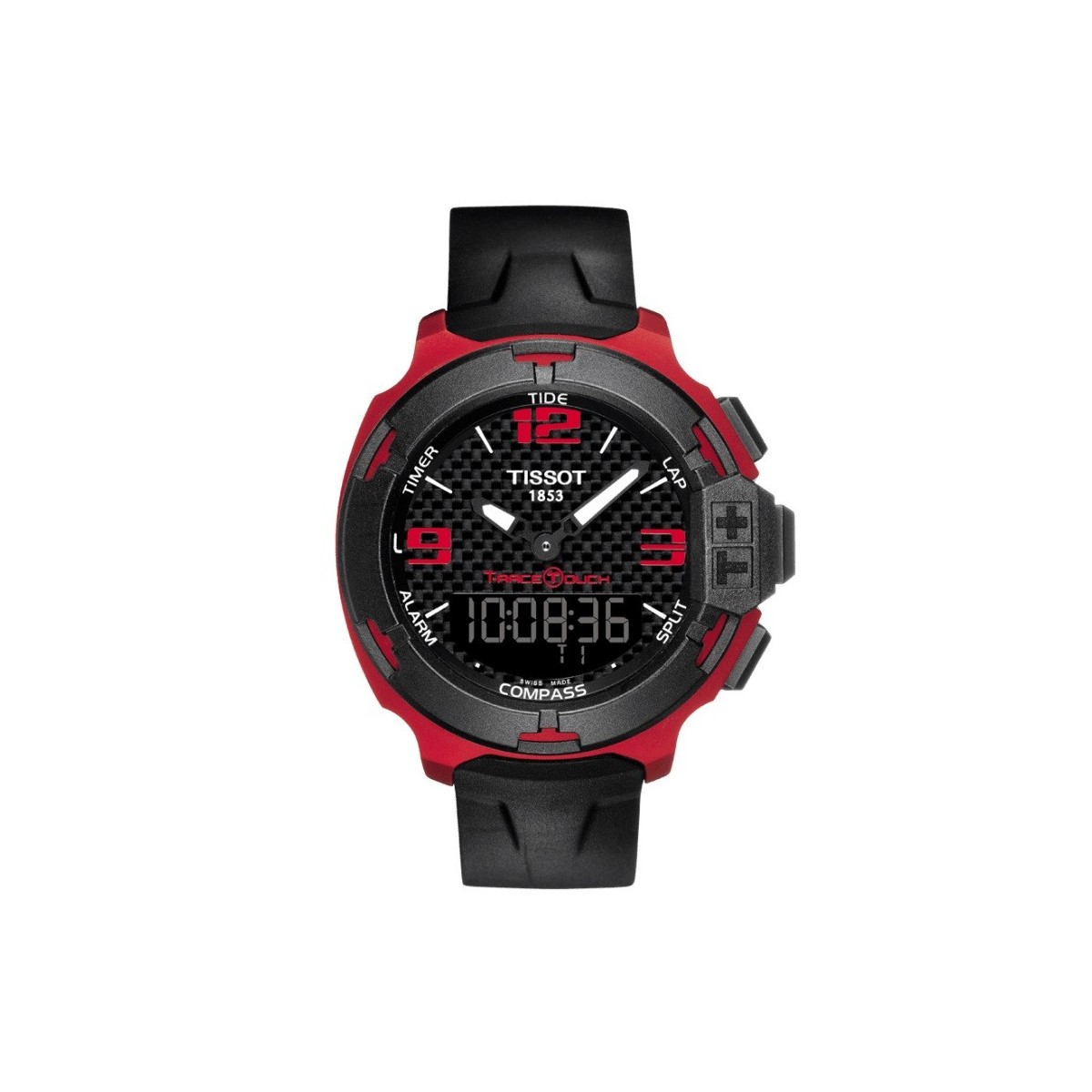 TISSOT T-RACE TOUCH ALUMINIUM Se state cercando un compagno per fare sport, eccolo qui! Il cinturino sintetico dell'orologio offre il massimo della comodità, incoraggiandovi a spingervi sempre oltre grazie alle sue svariate funzioni tattili. L'orologio vi consentirà di misurare tutti i tempi e i giri con la sua funzione cronografo (add/split/lap) e se vi serve una spinta in più, vi basterà dare un'occhiata ai tempi già raggiunti consultando il logbook, la funzione che, sfiorando semplicemente il vetro, mostra tutte le vostre precedenti performance. E grazie alla bussola, non potrete più perdervi. FUNZIONI: - MAREA - Le lancette mostrano la reale situazione delle maree, mentre l’ora della prossima alta e bassa marea è indicata sul display digitale. - CONTAMINUTI - Conto alla rovescia di un tempo che può essere regolato in ore, minuti e secondi. - SVEGLIA 1 E 2 - Due sveglie su 24 ore, di facile utilizzo, con segnale acustico. -TEMPI SUL GIRO - Funzione cronografica dedicata alla misurazione dei tempi sul giro di un atleta con una precisione entro 1/100 di secondo. - TEMPI INTERMEDI - Funzione cronografica dedicata alla misurazione dei tempi totali di gara con un massimo di 99 atleti che competono nello stesso evento cronometrato. - BUSSOLA - Indicazione del nord geografico mediante nord magnetico e declinazione regolabile verso est o ovest.