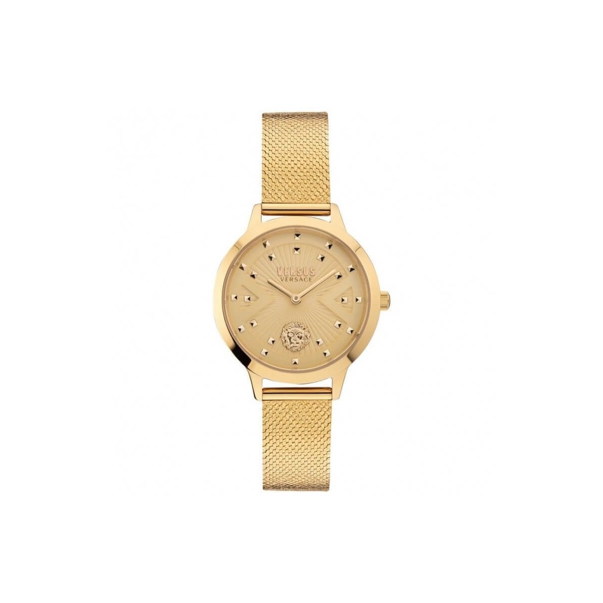 Orologio donna Versus Versace color oro, con cassa in acciaio e bracciale maglia milano lavorato mesh.
