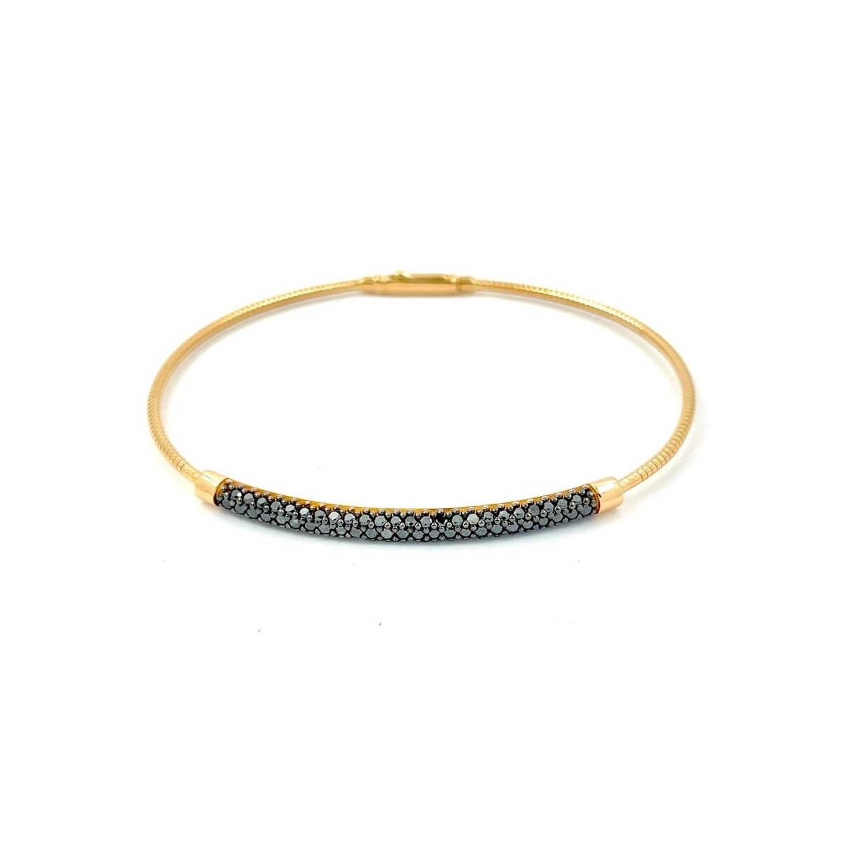 Bracciale Forever Star rigido in oro rosa 18kt con pavè di diamanti neri nella parte superiore. Misura 19 cm