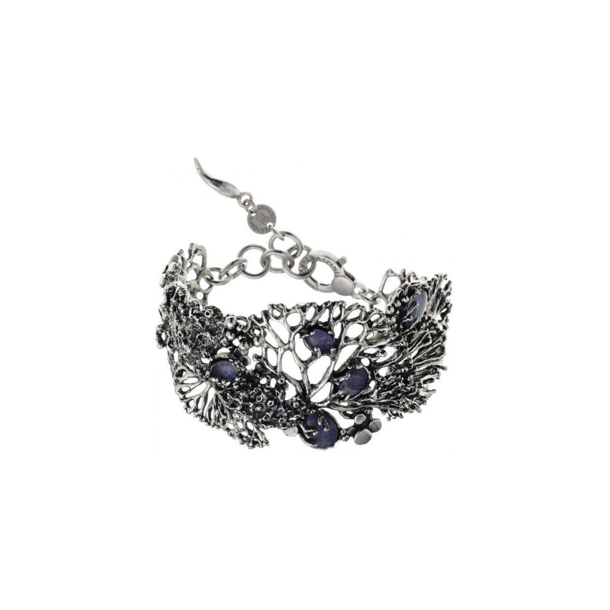 Bracciale Giovanni Raspini della collezione Mare/Nautilus realizzato in prezioso argento 925 ed impreziosito da opale e cristalli di rocca incastonati tra i rami di corallo che formano questo bracciale dallo stile contemporaneo. Chiusura moschettone.