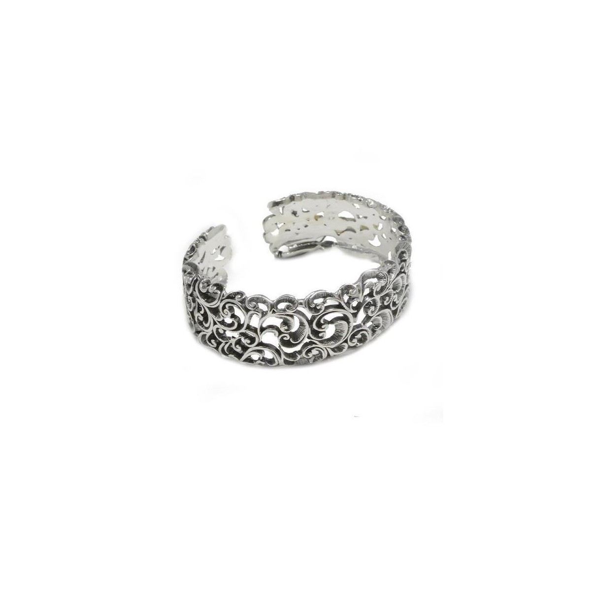 Bracciale rigido aperto che esprime tutta l'anima dei gioielli Maria e Luisa con lavorazione manuale al bulino.