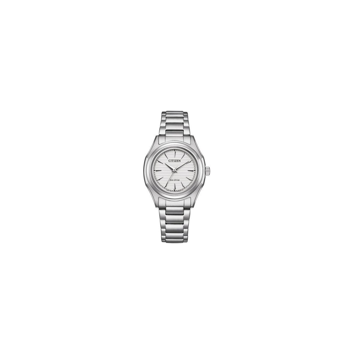 Orologio da donna Citizen, della collezione Of Classic Elegance Lady , con funzione di solo tempo e movimento Eco-Drive, solare con riserva di carica fino a 6 mesi. Orologio realizzato in acciaio 316L satinato con bracciale a maglie, cassa 32 mm, ghiera in alluminio e quadrante bianco. Chiusura deployante.