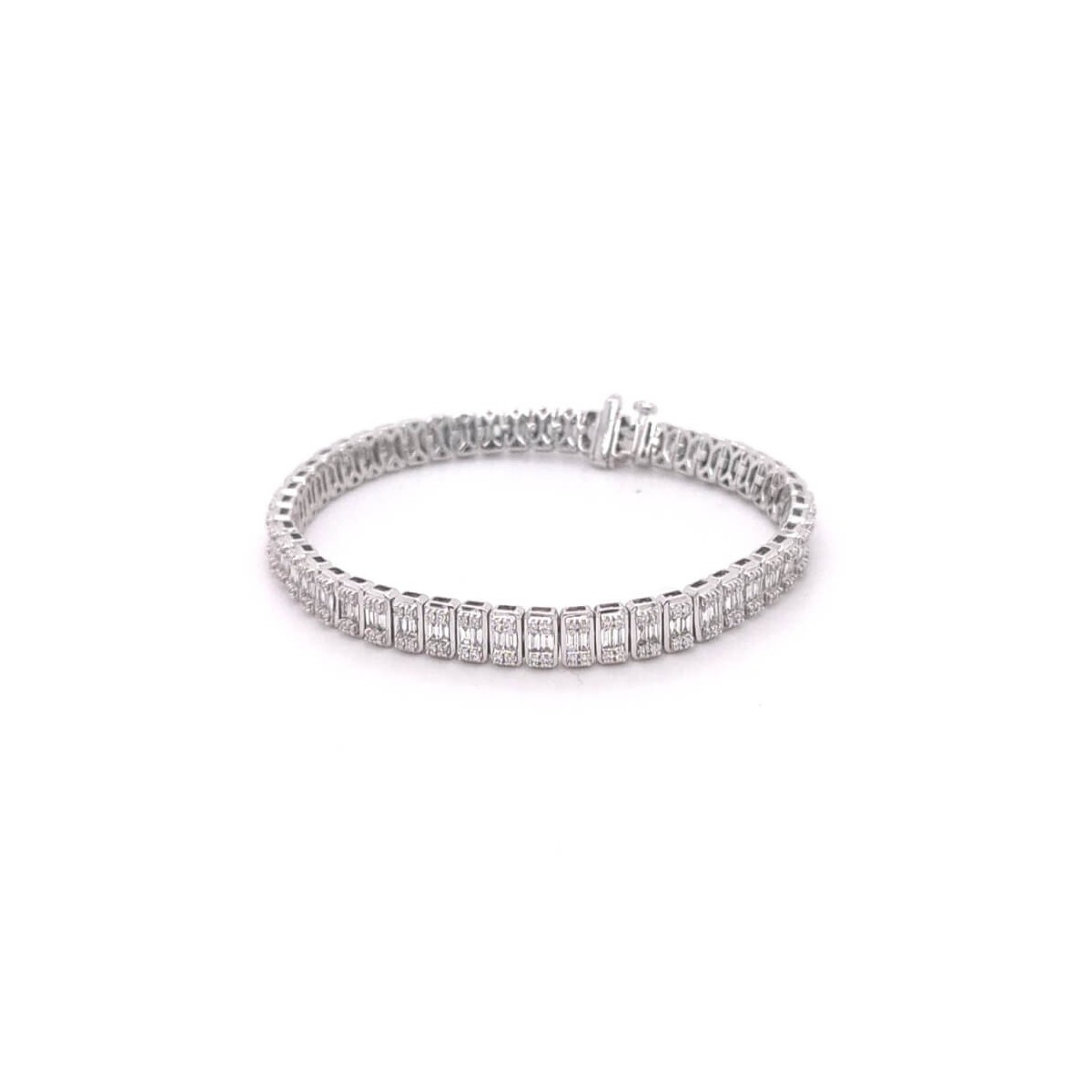Bracciale da donna, modello Tennis, della collezione Magia di Salvini realizzato in oro bianco e diamanti naturali taglio baguette e taglio brillante per un totale di 2,65 carati.