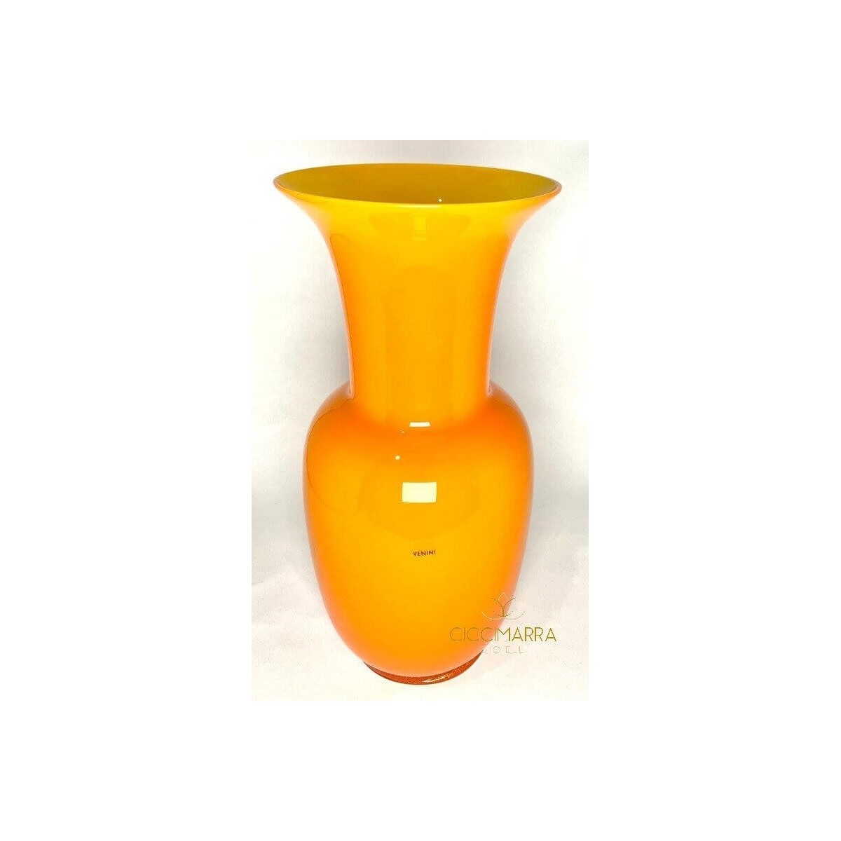 Vaso Venini in edizione limitata Opalino medio di colore Arancione interno verde