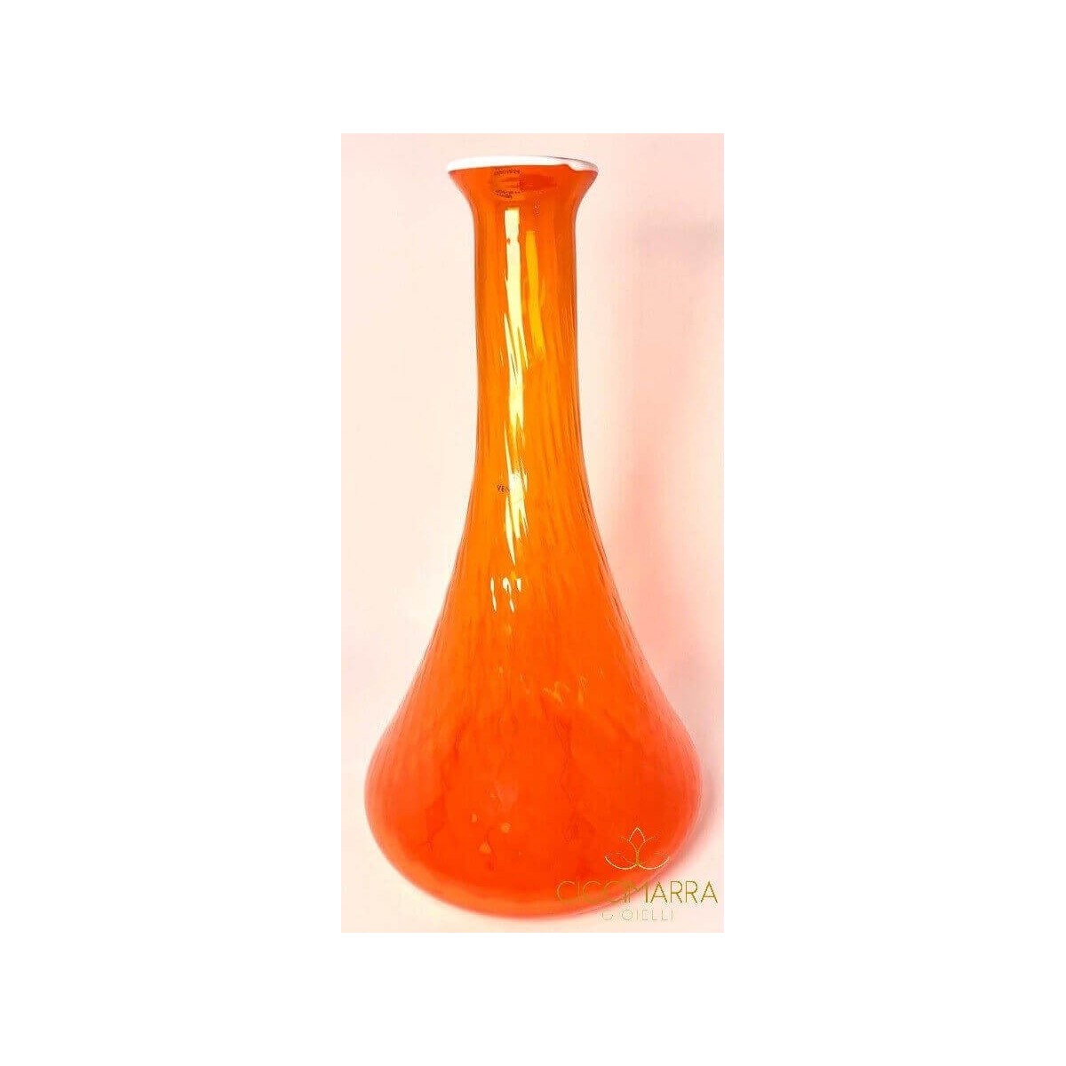 Vaso in vetro di Murano Monofiore della linea Reticoli grande. Colore Arancione con filo bianco