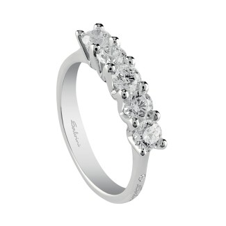 Veretta in oro bianco della collezione Virginia Anello a 5 diamanti centrali montatura a griffe. - Oro Bianco 18 kt; - ct. Totale diamanti 0,255; - Grammi oro 3,00; - misura 13; Possibilità di incisione. L’eterea eleganza del diamante sublimata nella sua forma più pura. Un classico che non smette di incantare irradiando magici riflessi di luce. Perfetto nella sua semplicità è più di un gioiello, è un sogno che si avvera.